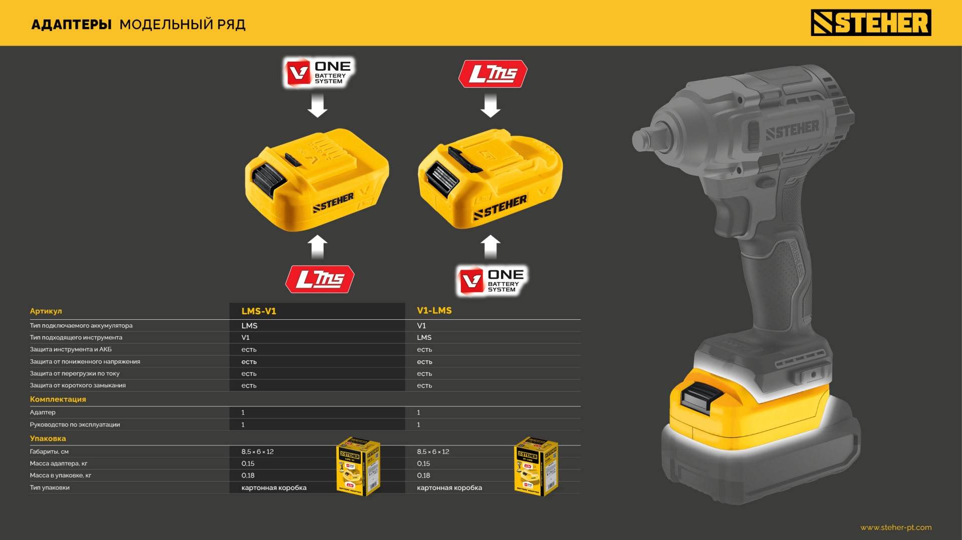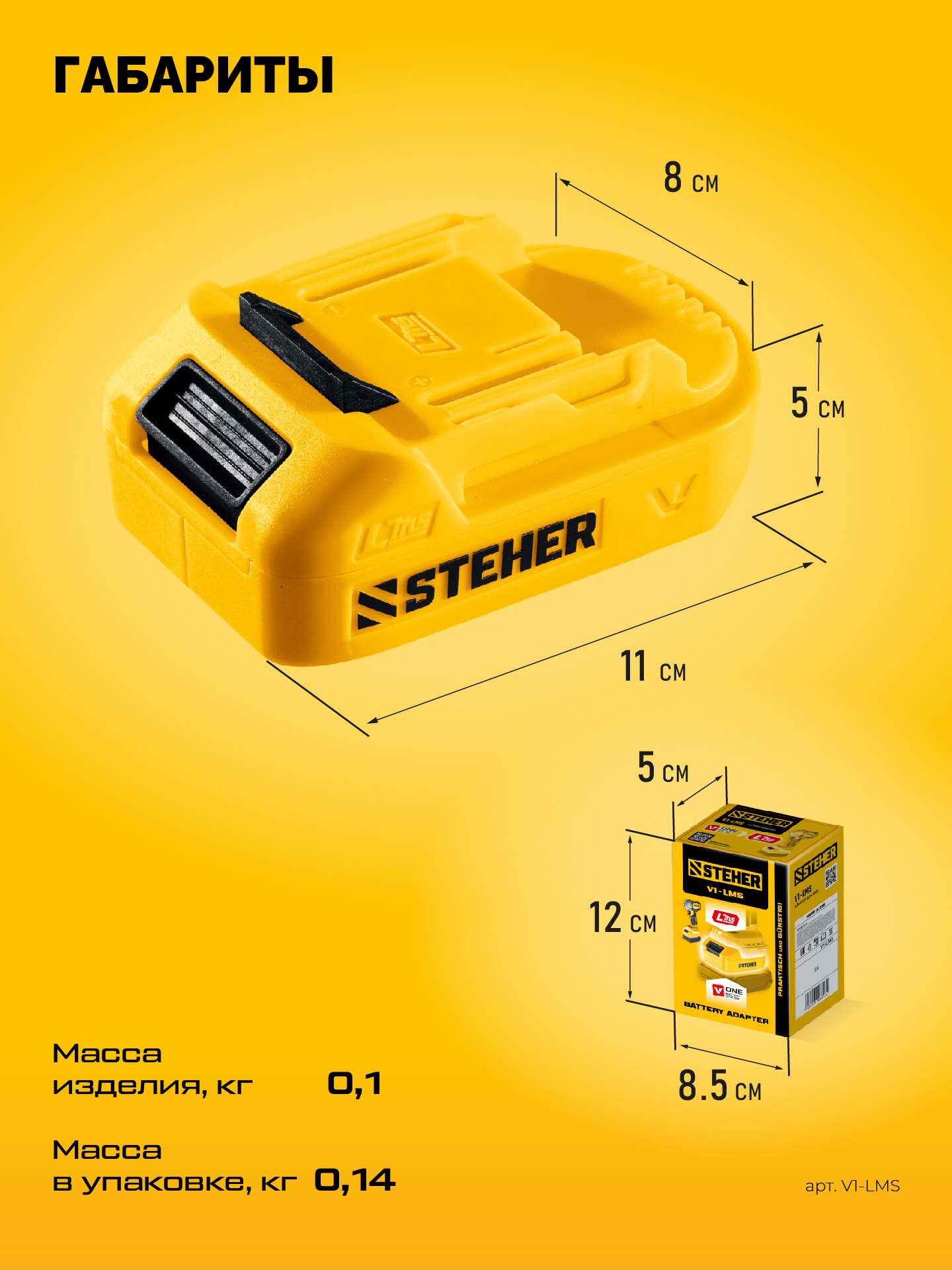 STEHER 20 В, адаптер для АКБ V1 под инструмент LMS (V1-LMS)