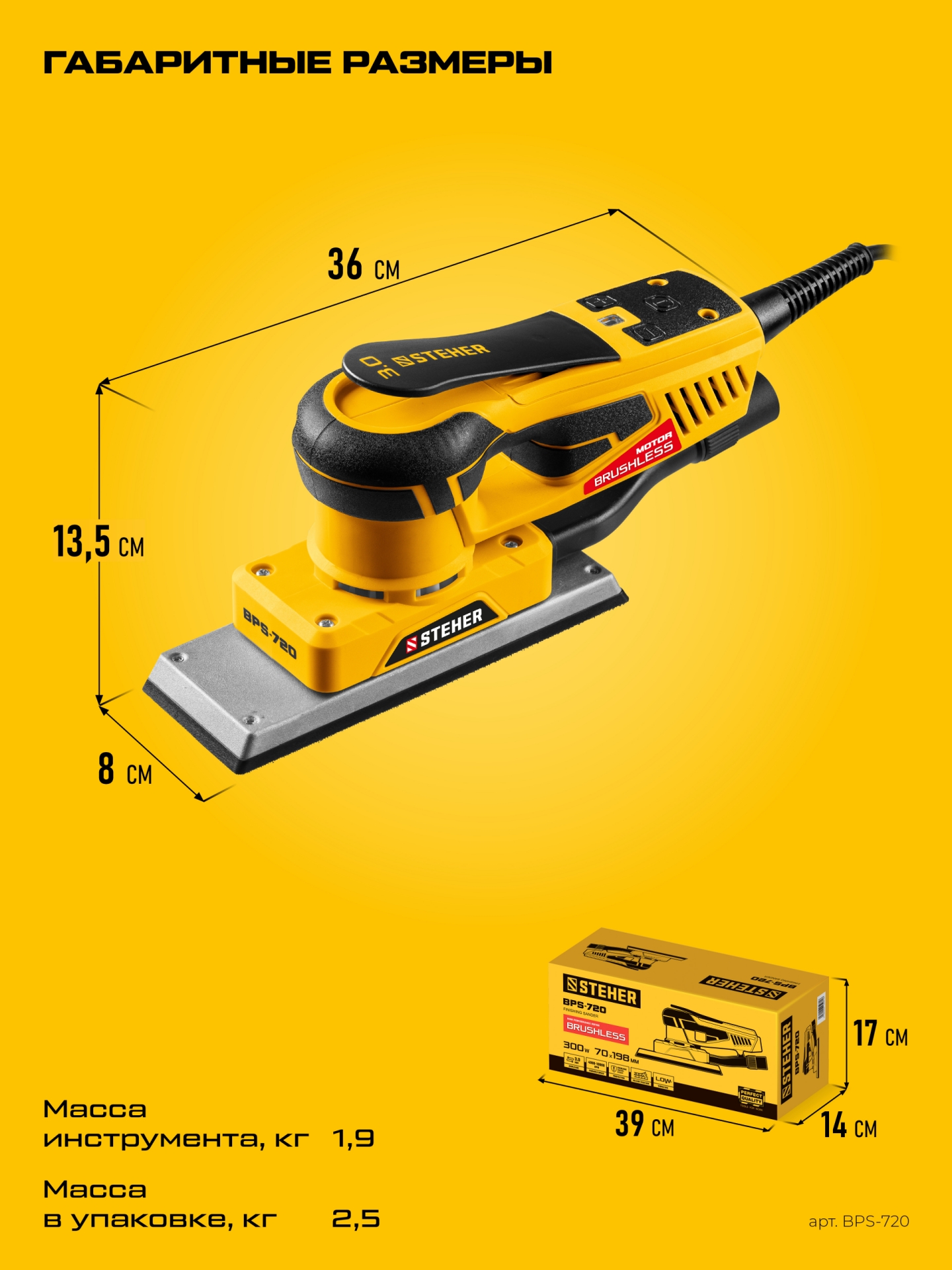 STEHER 70х198 мм, 300 Вт, 3 мм, бесщеточная плоскошлифовальная машина (BPS-720)