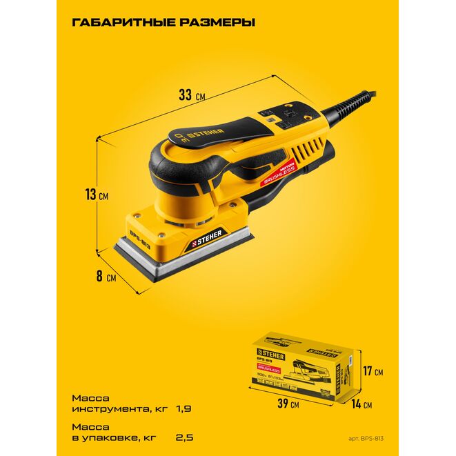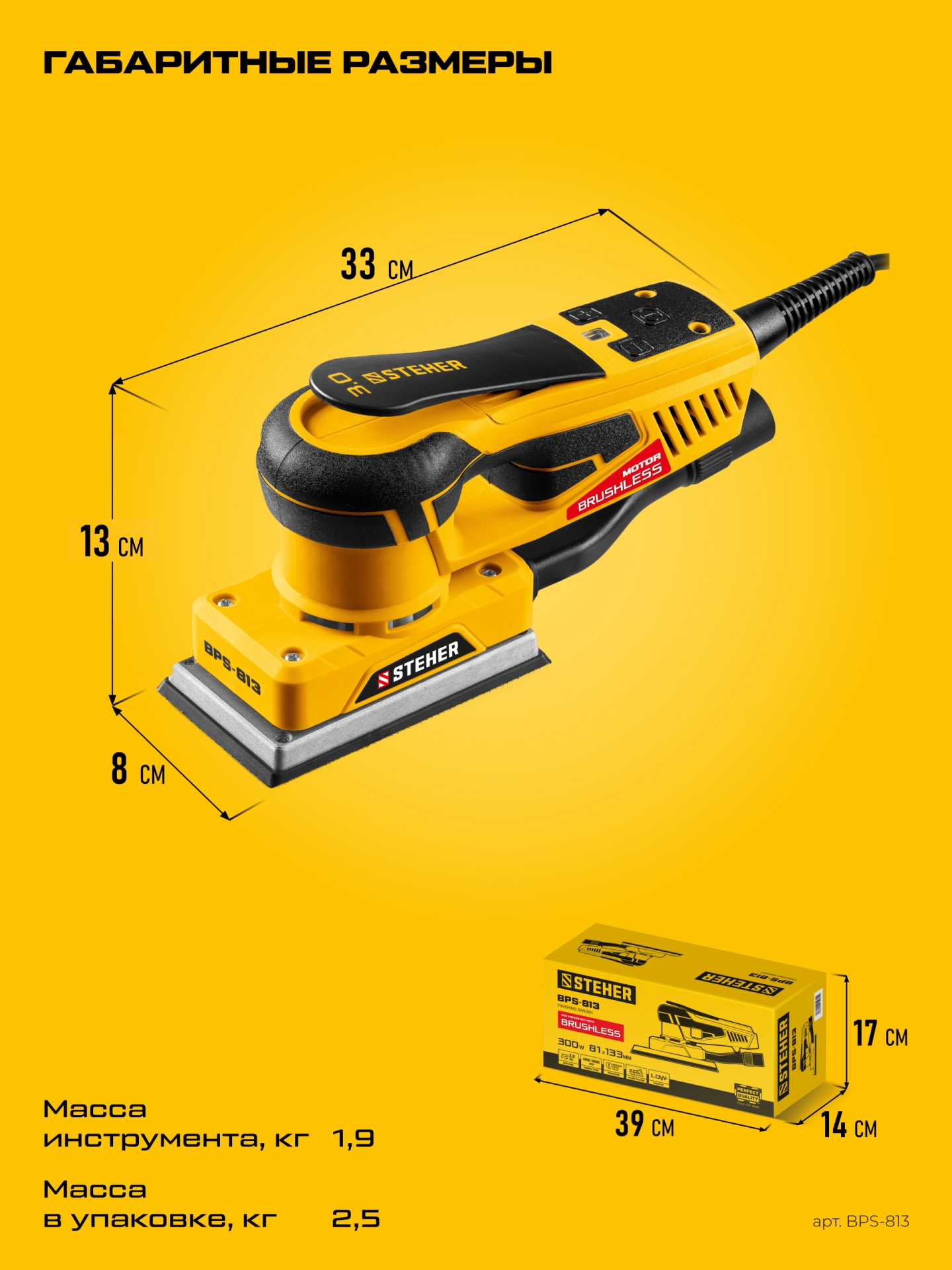 STEHER 81х133 мм, 300 Вт, 3 мм, бесщеточная плоскошлифовальная машина (BPS-813)