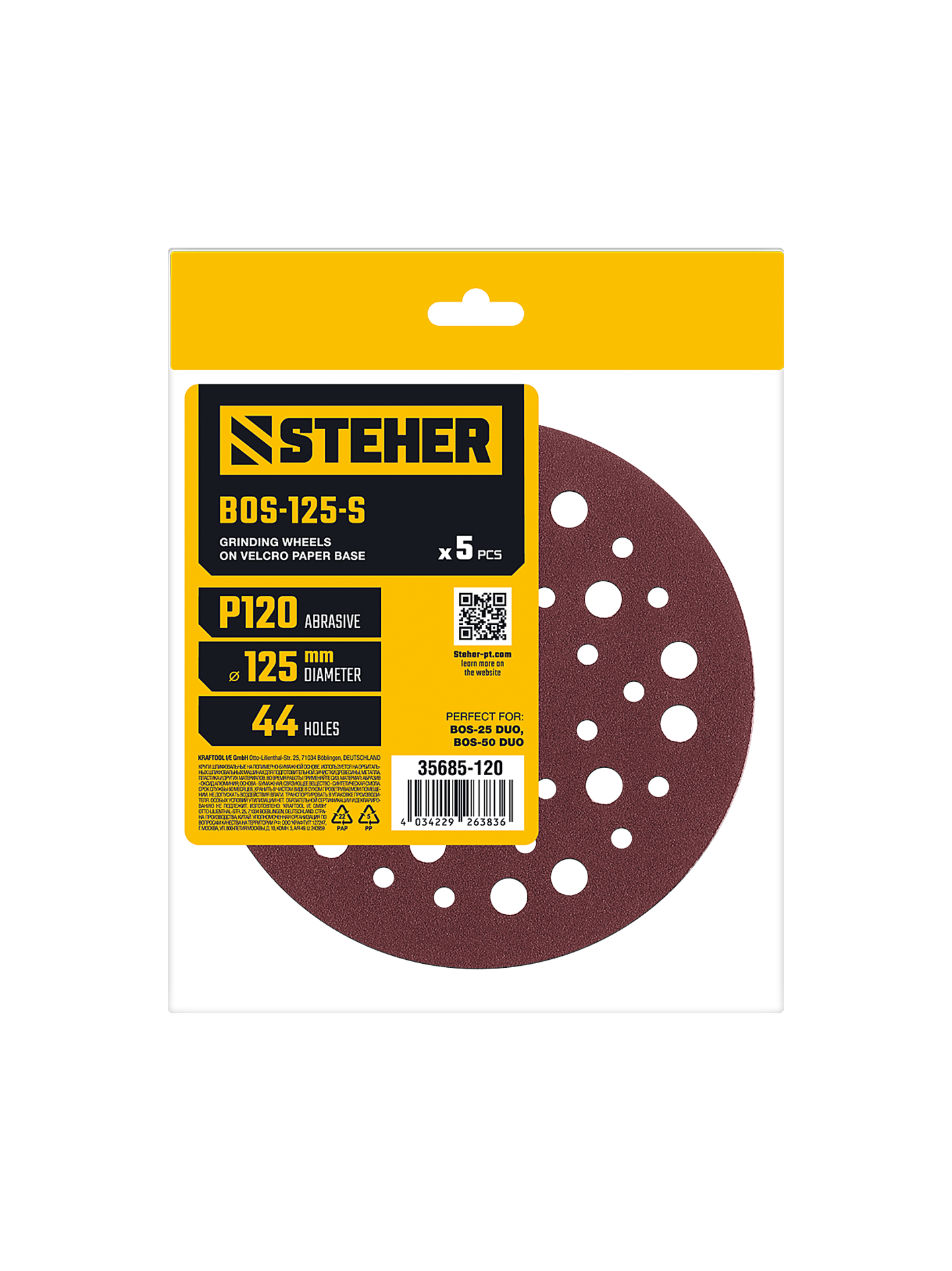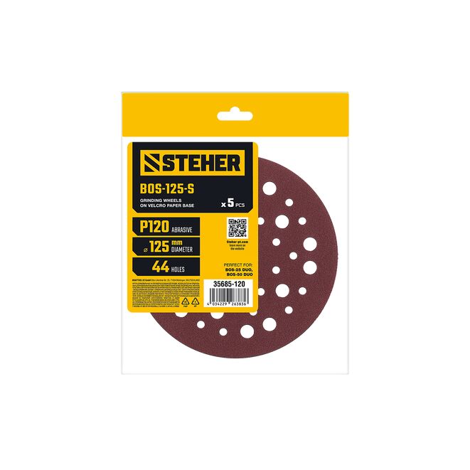 STEHER BOS-125-S 125 мм, Р120, шлифовальный круг на липучке, 44 отв., 5 шт. (35685-120)