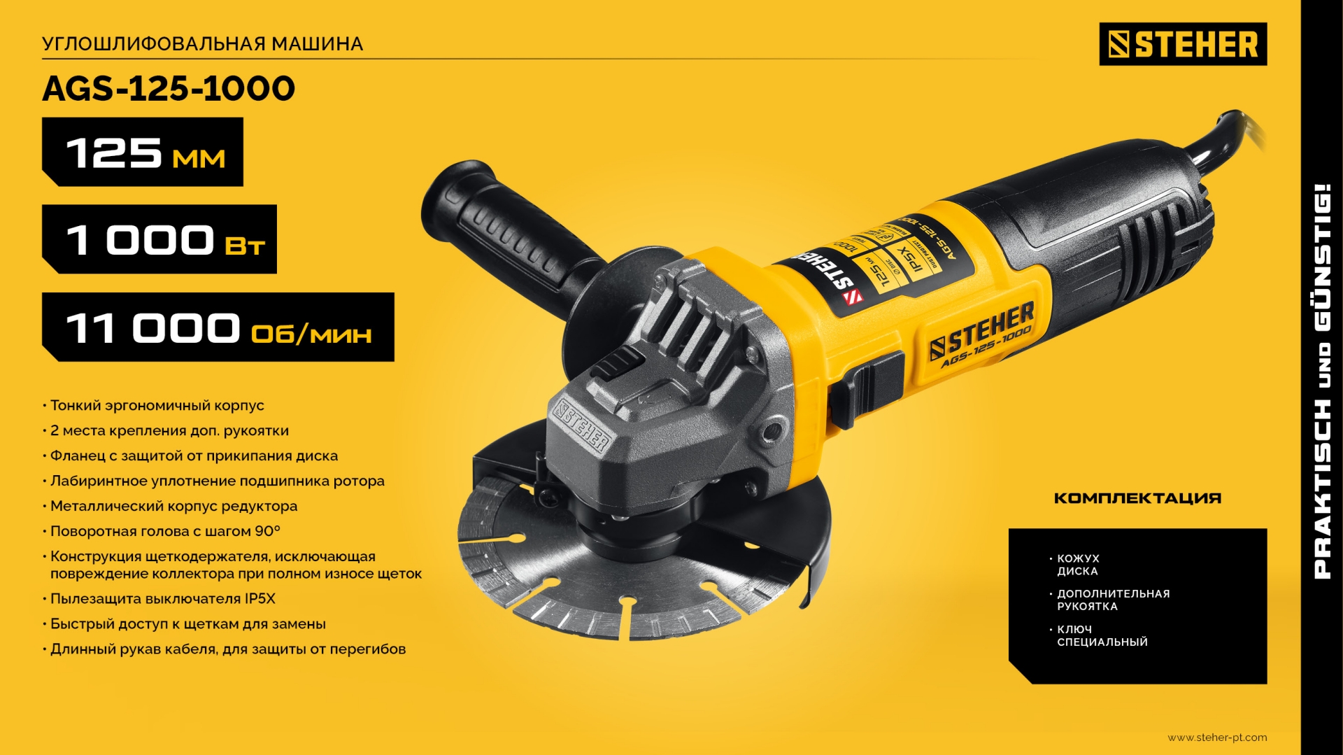 STEHER d 125 мм, 1000 Вт, УШМ (AGS-125-1000)