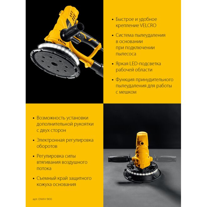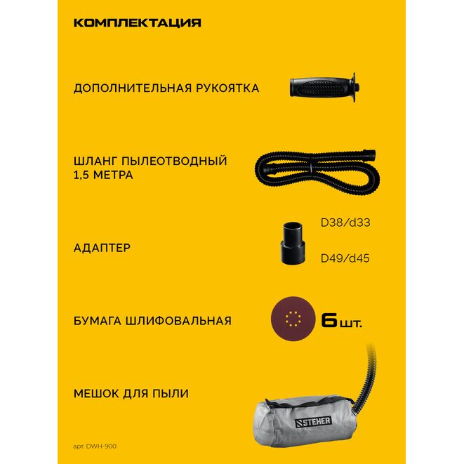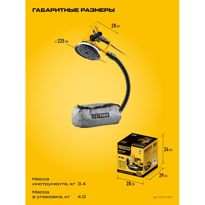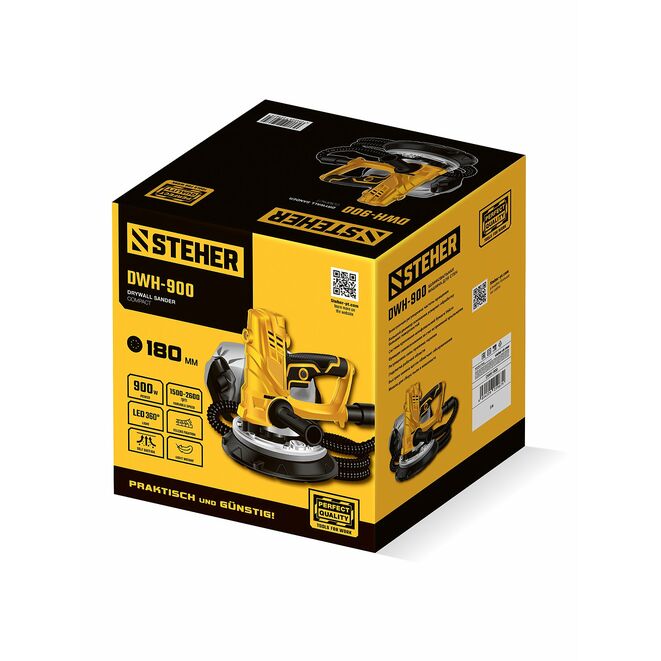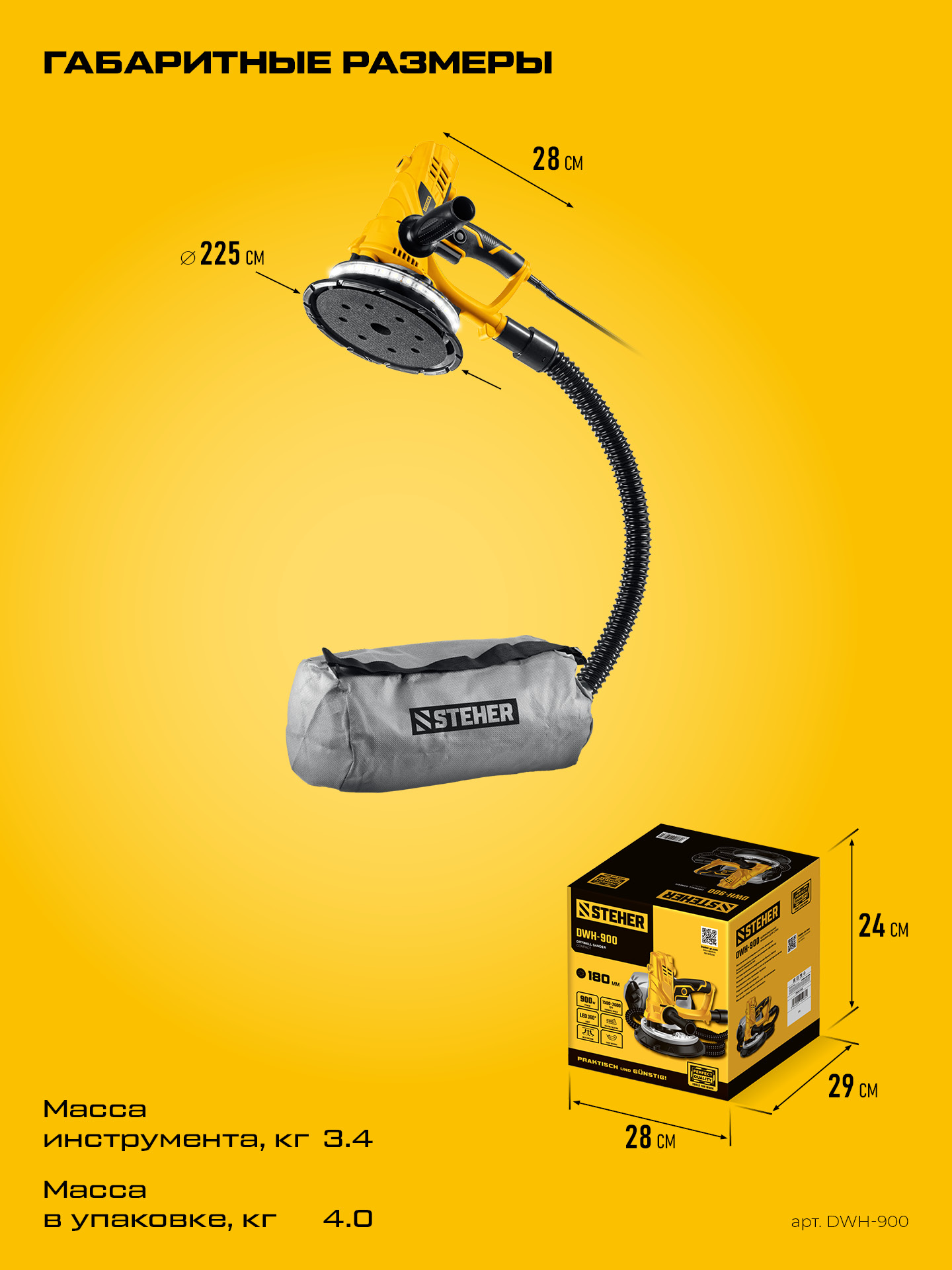 STEHER d180 мм, 900 Вт, подсветка, шлифовальная машина для стен (DWH-900)