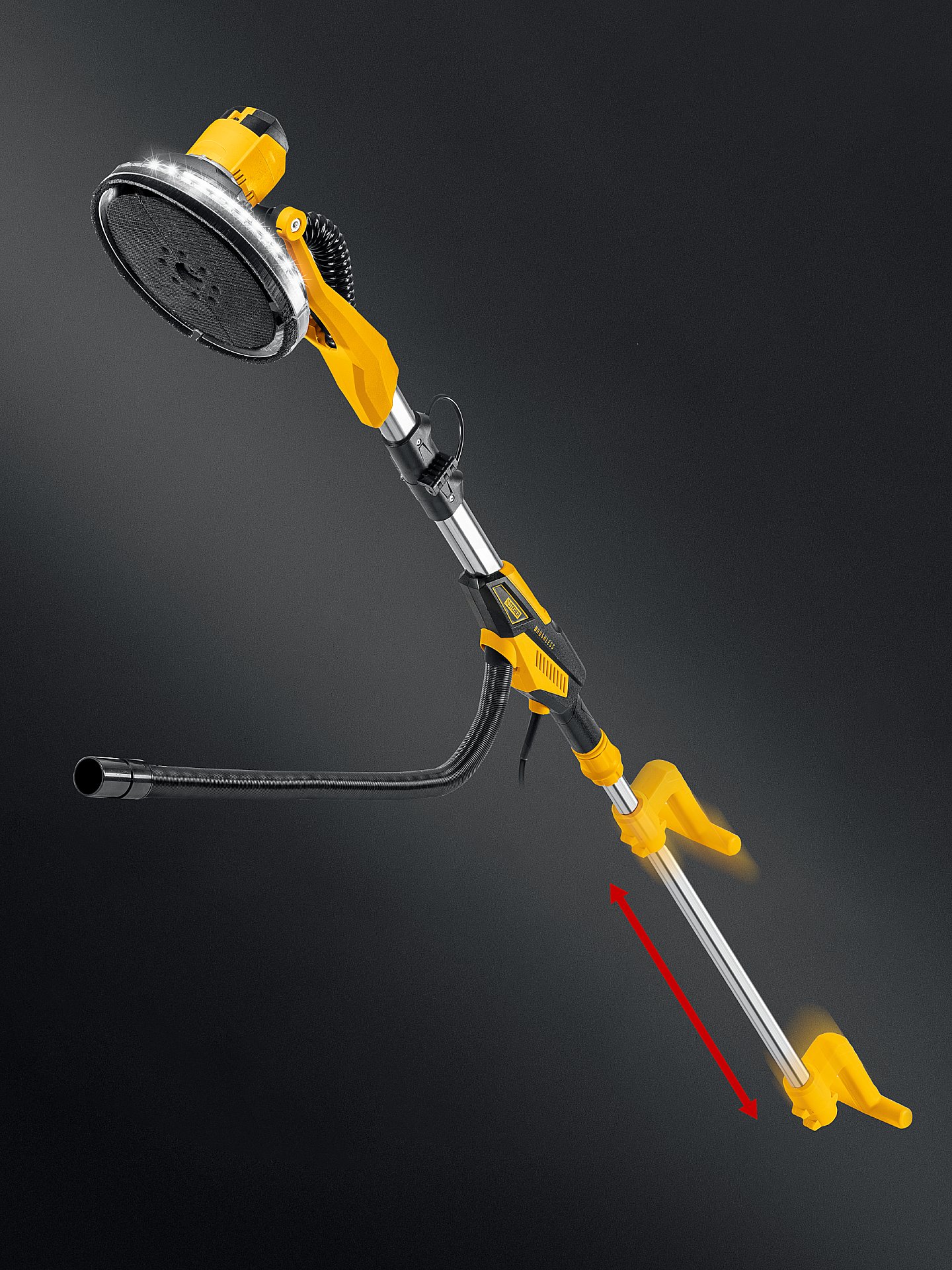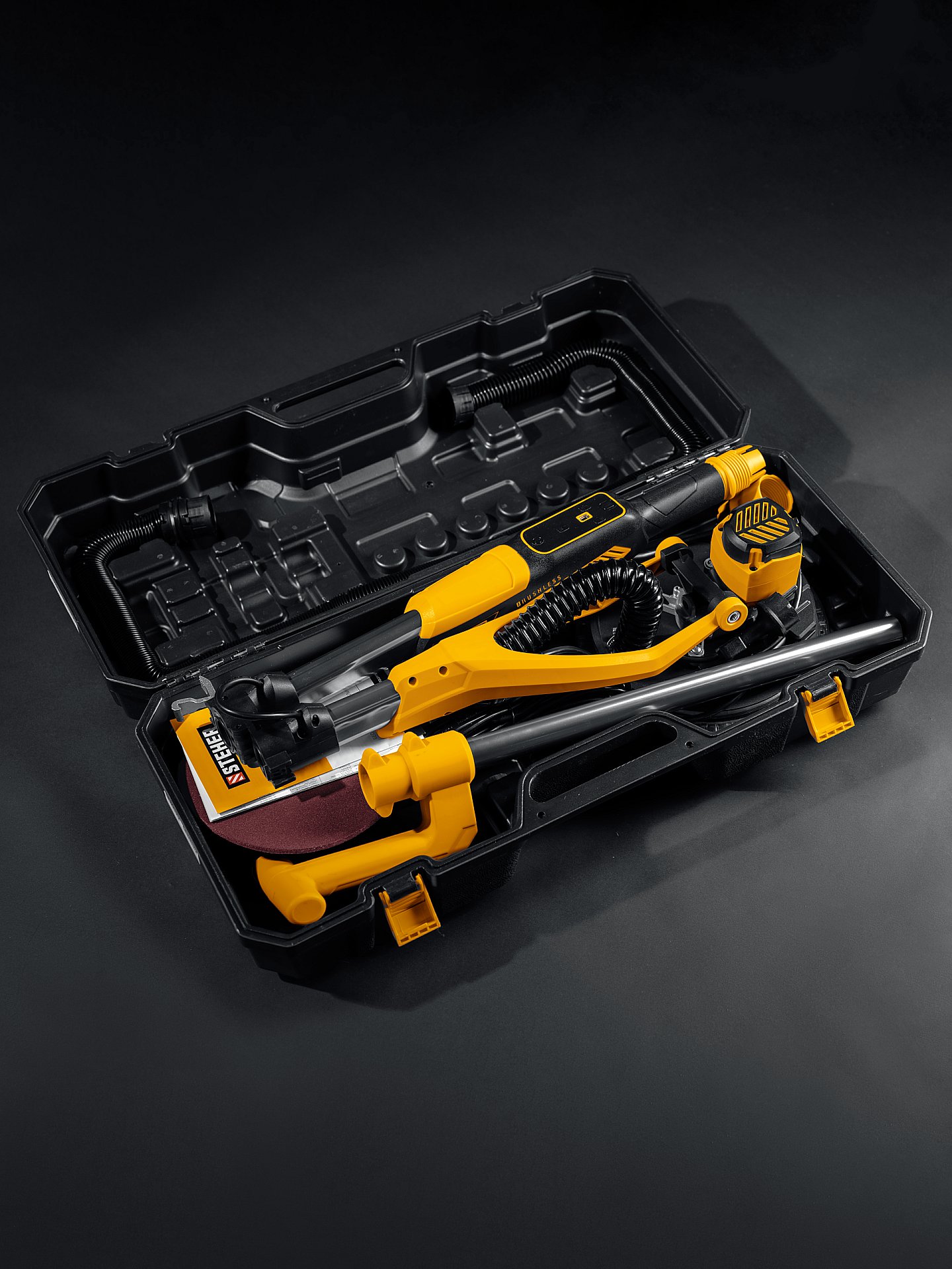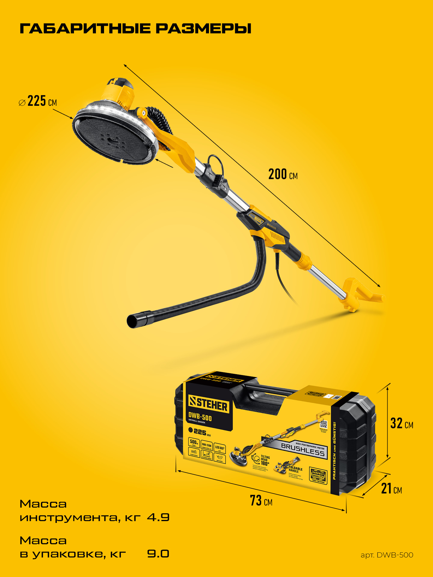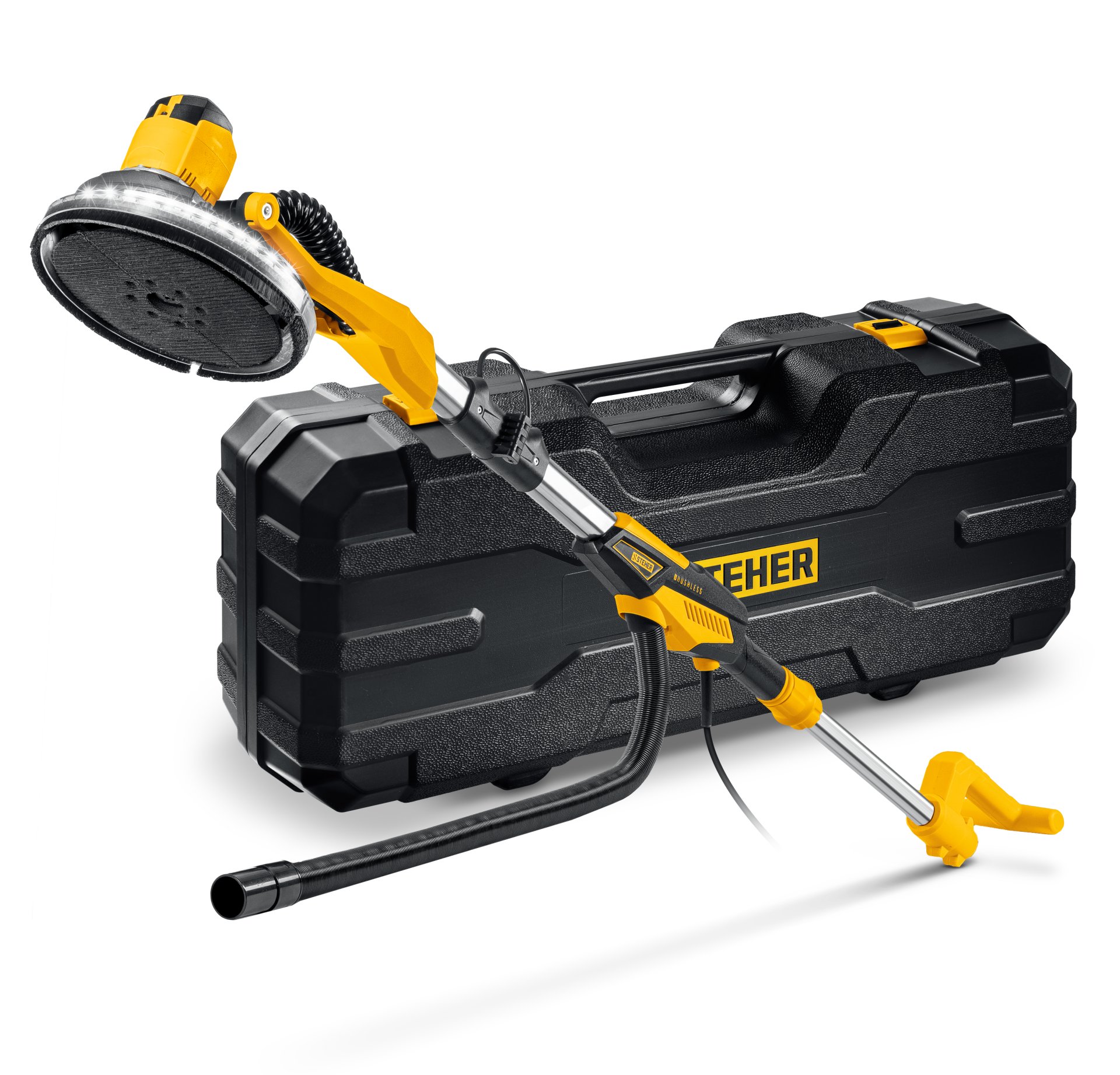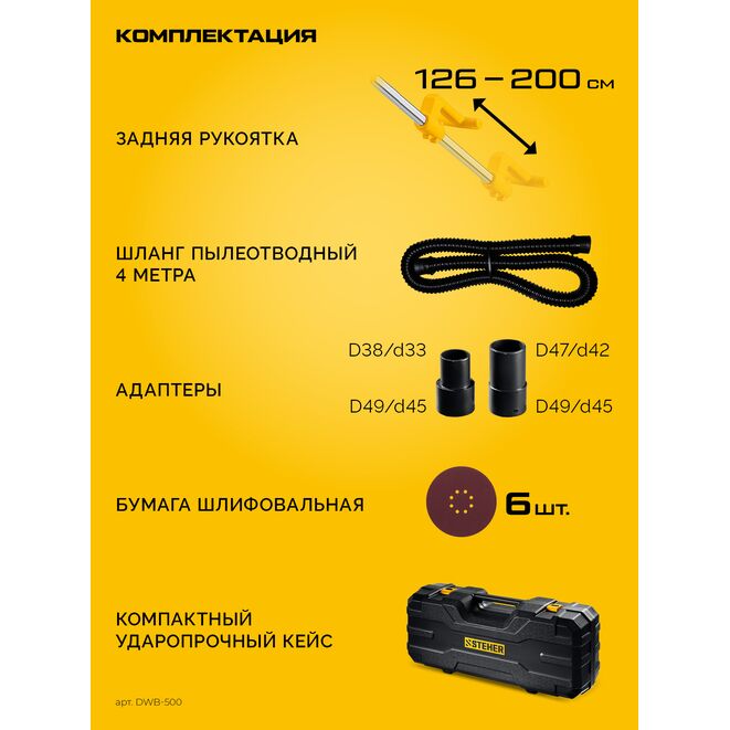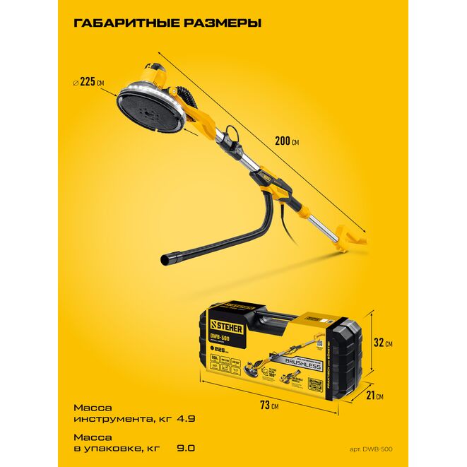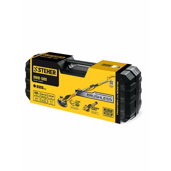 STEHER d225 мм, 500 Вт, подсветка, бесщеточная шлифовальная машина для стен (жираф), кейс (DWB-500)