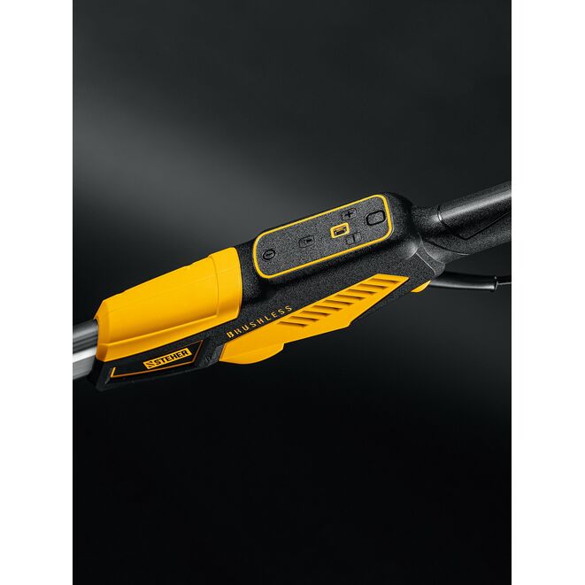 - Раздвижная задняя рукоятка позволяет настроить инструмент под свой рост и необходимую высоту обработки