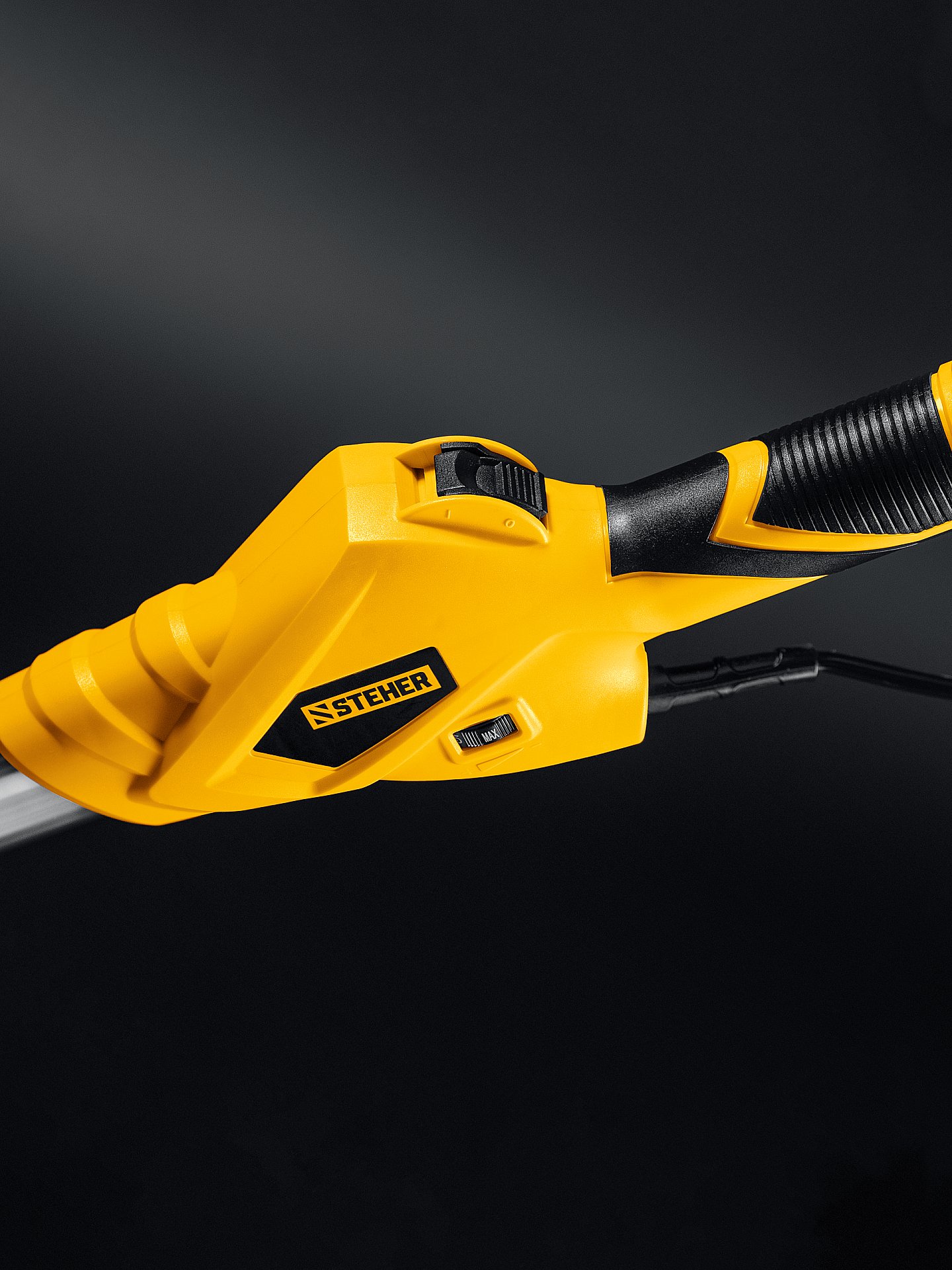 - Раздвижная задняя рукоятка позволяет настроить инструмент под свой рост и необходимую высоту обработки
