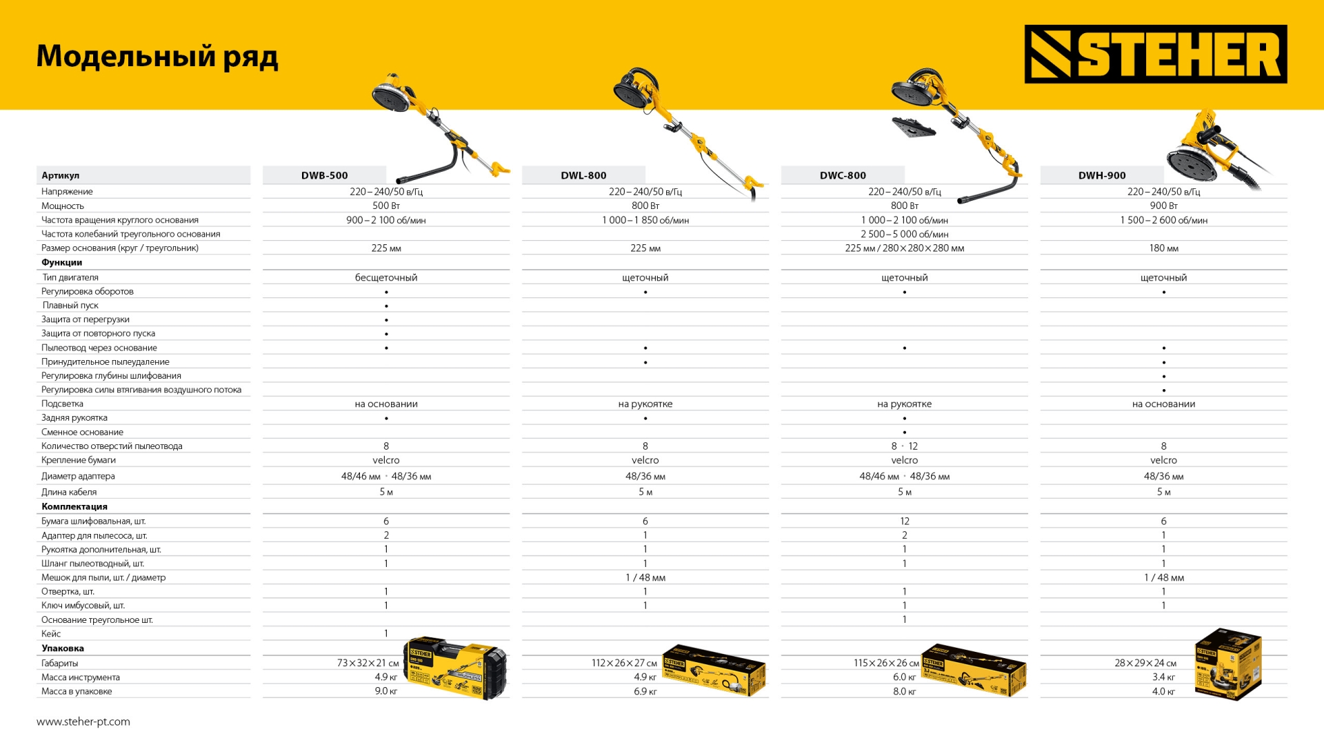 Шлифовальная машина для стен STEHER DWL-800, предназначена для компактного, легкого и высокоэффективного шлифования бетона, сухого шлифования и финишной доводки стеновых и потолочных поверхностей.Характеристики STEHER DWL-800: