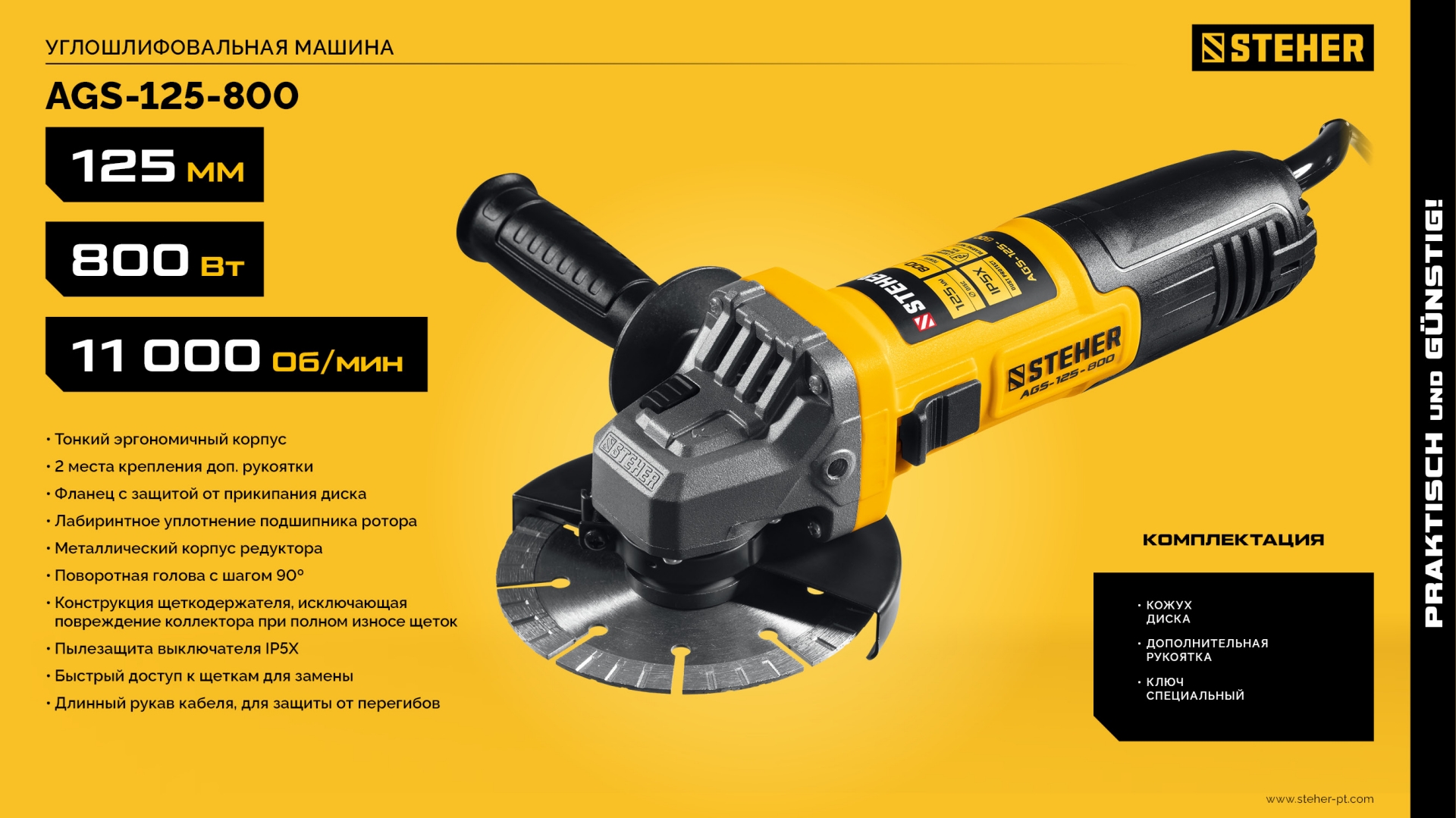 STEHER Компакт, d 125 мм, 800 Вт, УШМ (AGS-125-800)