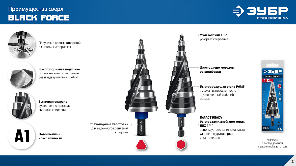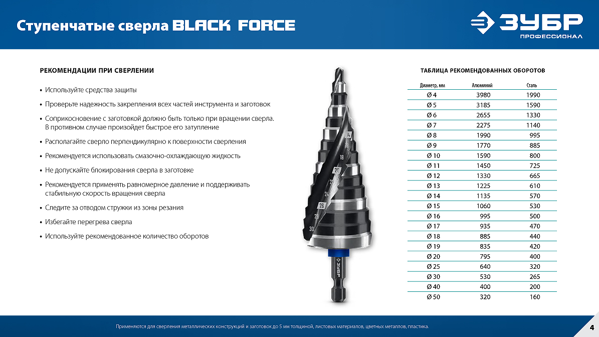 Ступенчатые сверла Black Force ЗУБР. Уверенность в каждом шаге!