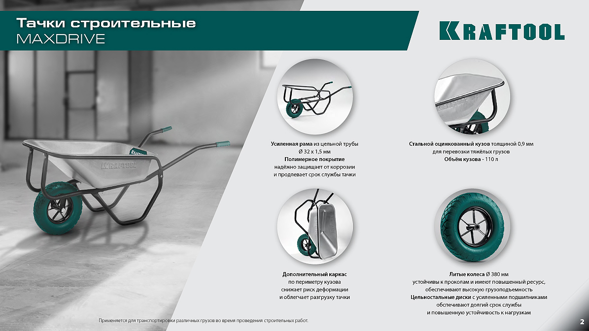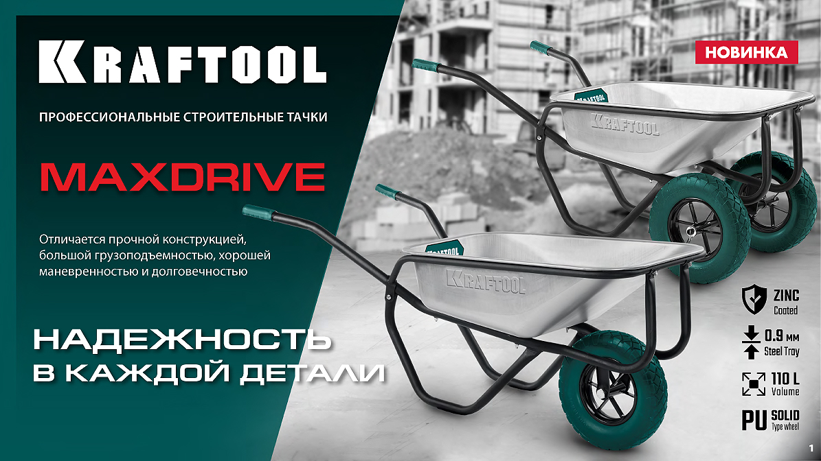 Тачки строительные MAXDRIVE KRAFTOOL. Надежность в каждой детали!