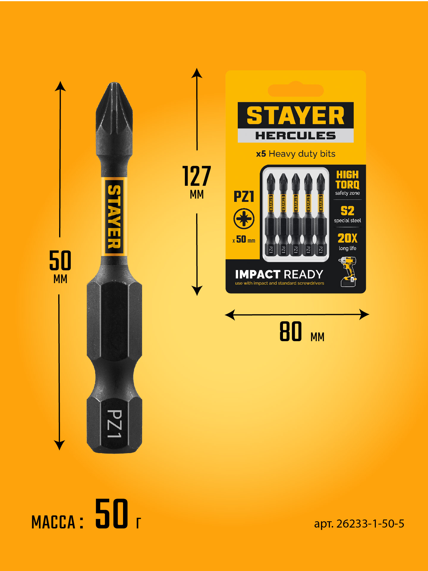 STAYER HERCULES PZ 1, 50 мм, 5 шт, торсионные биты (26233-1-50-5)