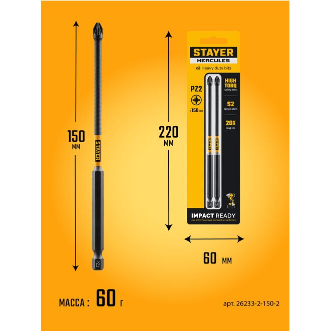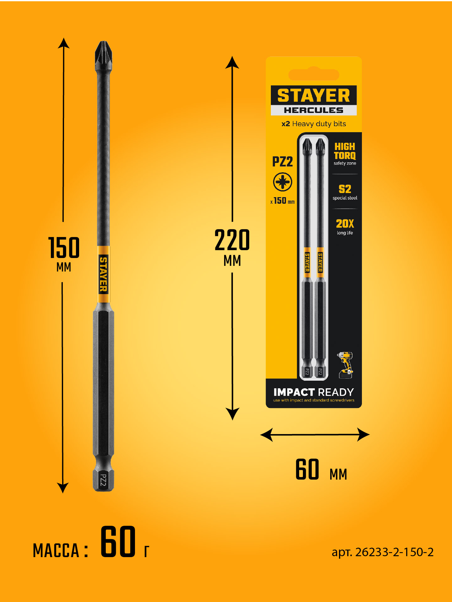 STAYER HERCULES PZ 2, 150 мм, 2 шт, торсионные биты (26233-2-150-2)