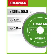 URAGAN CERAMO 125 мм, диск алмазный отрезной сплошной (36707-125)