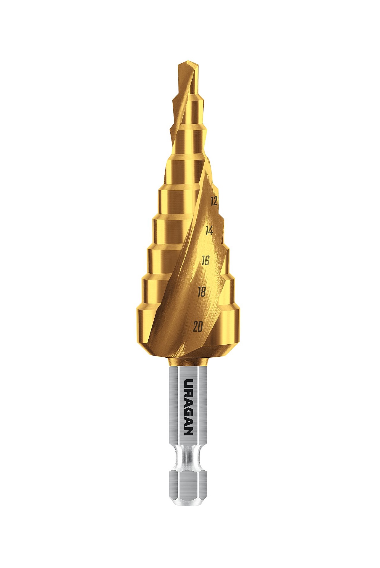 URAGAN 4-20 мм, 9 ступеней, винтовая спираль, сверло ступенчатое (29658-4-20-9)