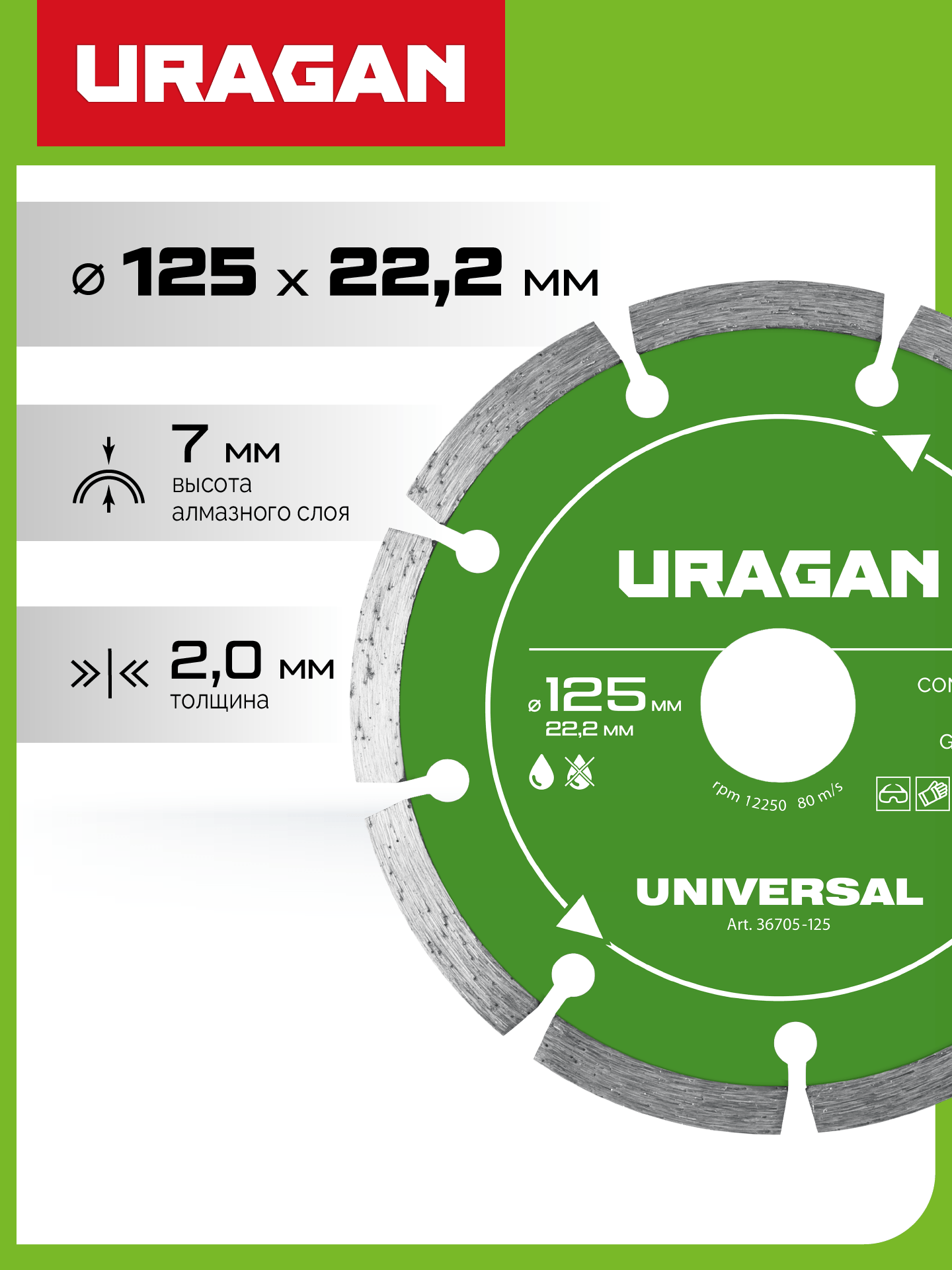 URAGAN UNIVERSAL 125 мм, диск алмазный отрезной сегментный (36705-125)