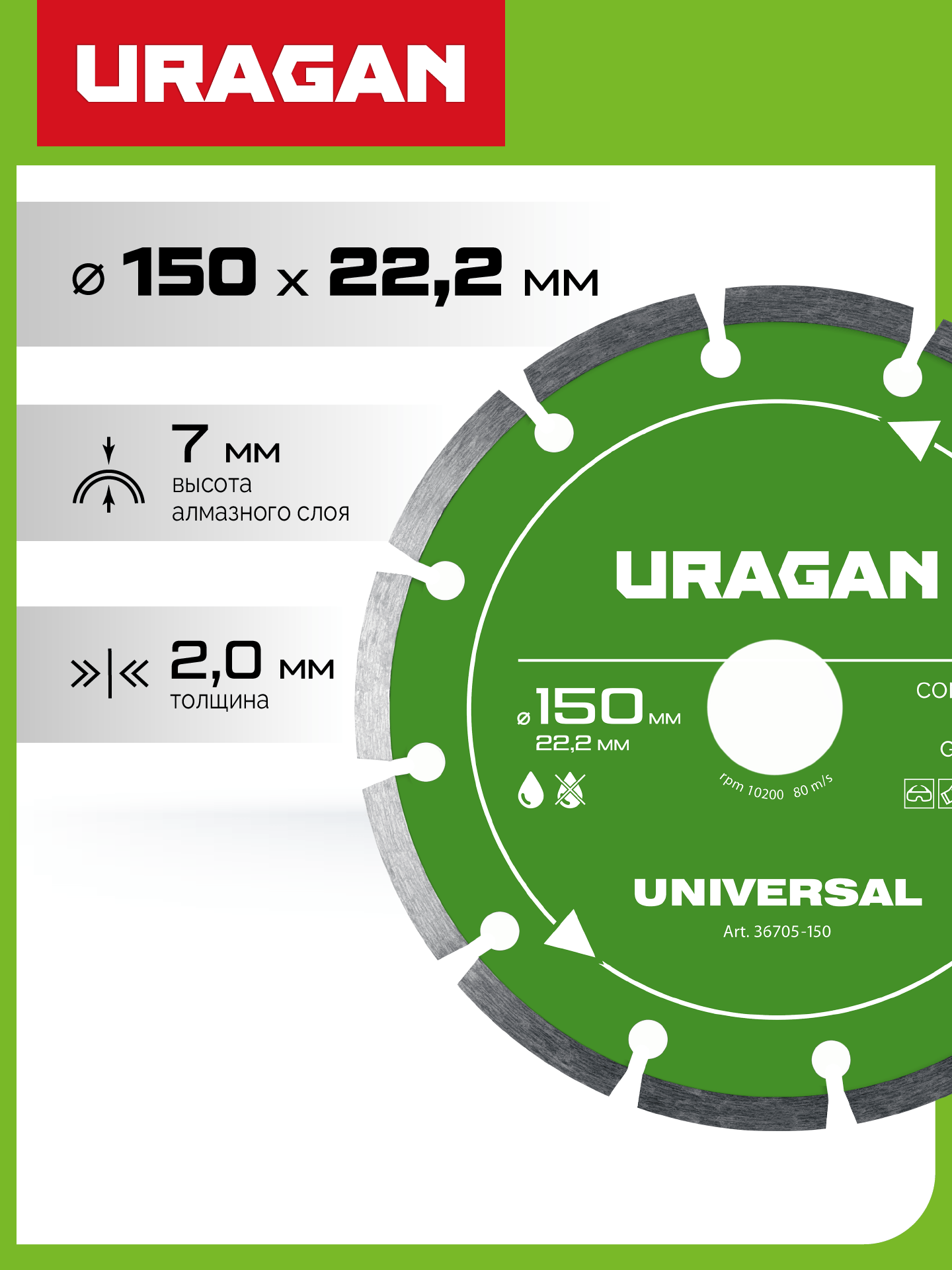 URAGAN UNIVERSAL 150 мм, диск алмазный отрезной сегментный (36705-150)
