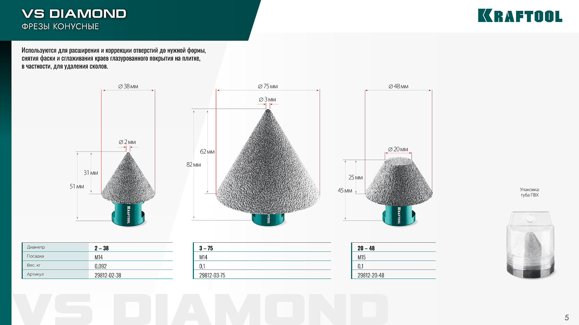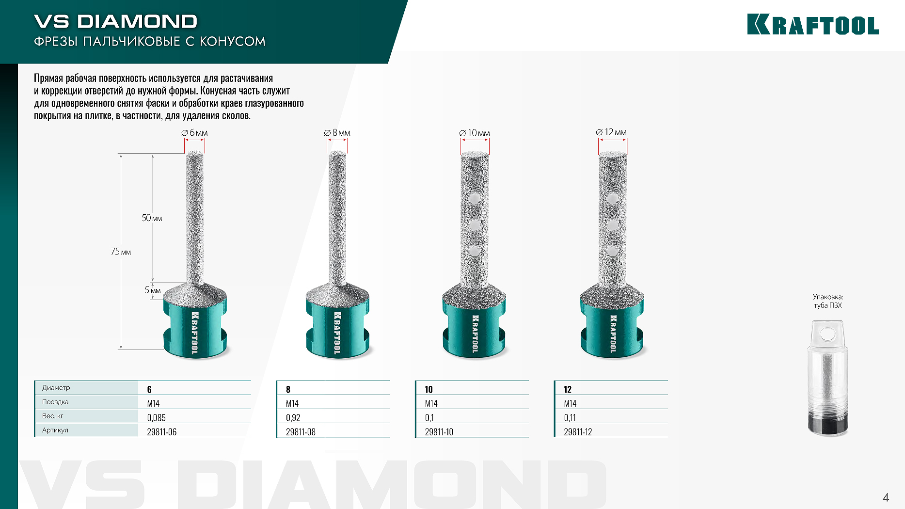Вакуумные алмазные фрезы KRAFTOOL. НОВИНКА!
