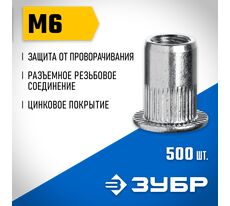 ЗУБР М6, станд. бортик, 500 шт, стальные резьбовые заклепки с насечками, Профессионал (31317-06)