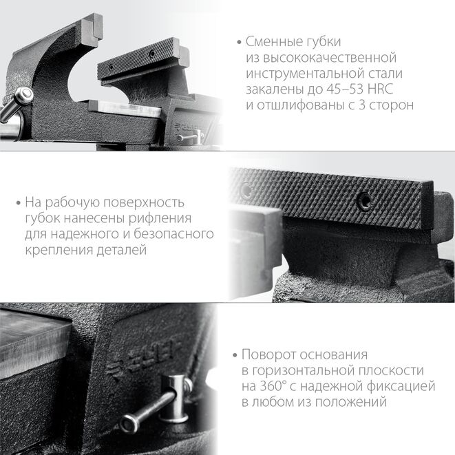 • Рельефная поверхность губок для надежного и безопасного крепления деталей