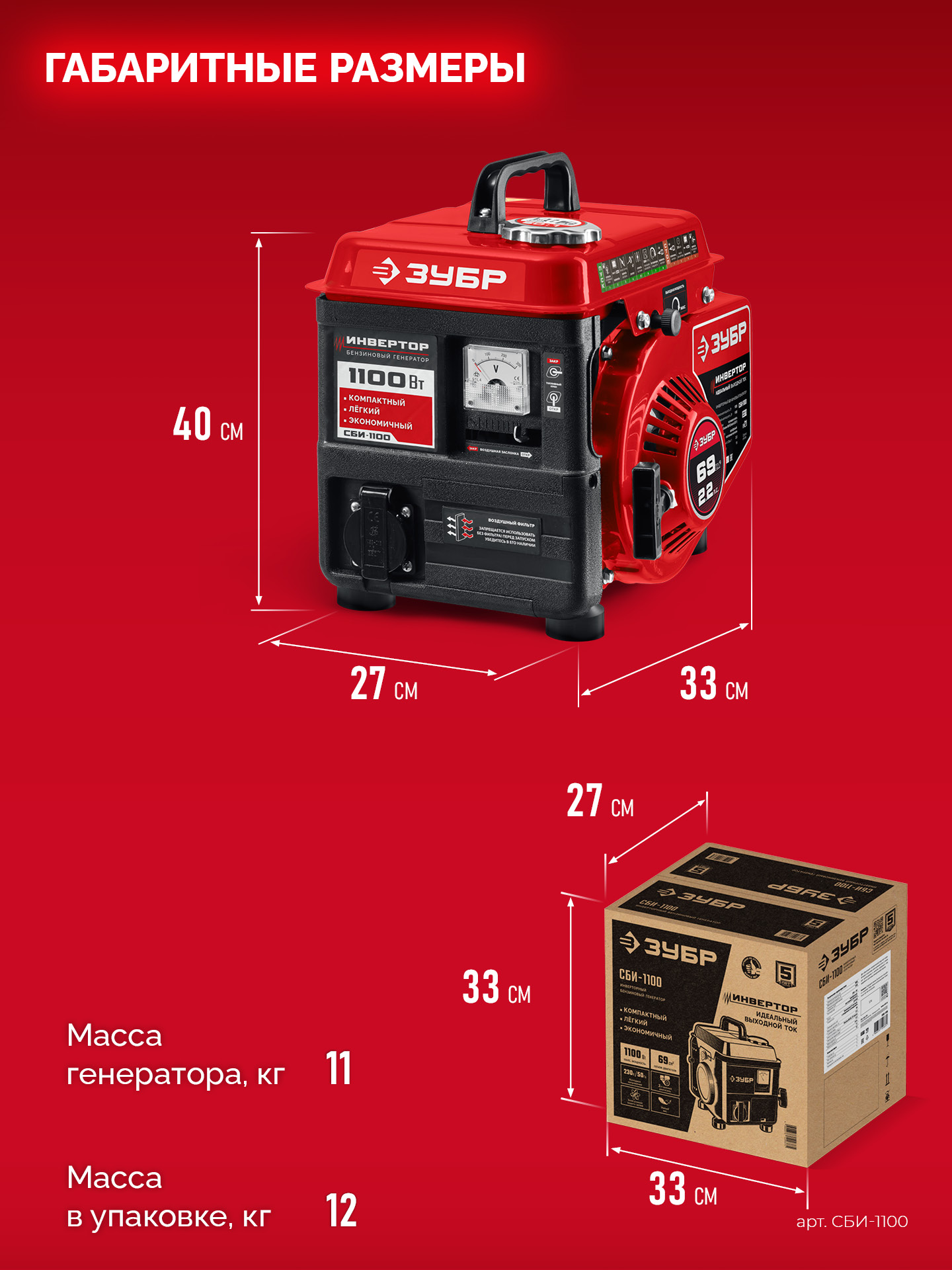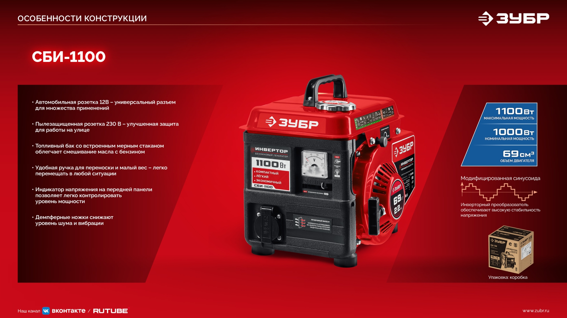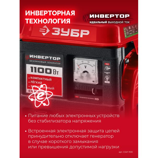 ЗУБР 1100 Вт, инверторный генератор (СБИ-1100)