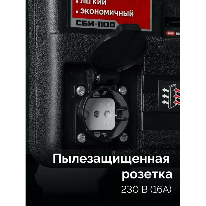 - Пылезащищенная розетка 230 В, улучшенная защита для работы на улице