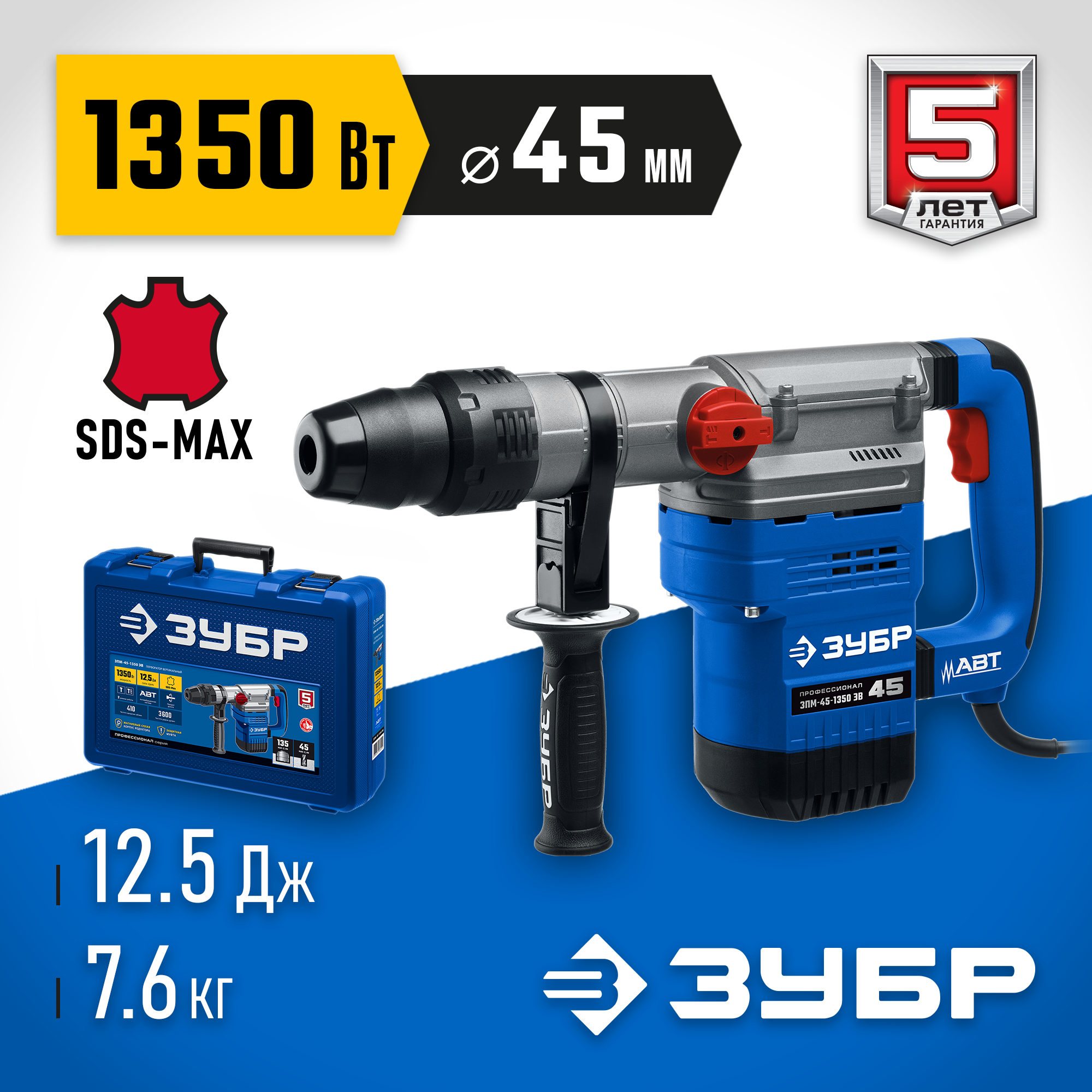 ЗУБР 45 мм, 1350 Вт, АВТ, перфоратор SDS-Max, Профессионал (ЗПМ-45-1350 ЭВ)