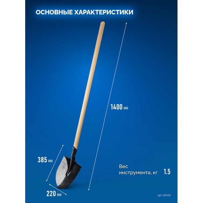 Принадлежности для ЗУБР ПРОФИ-5, 385х220х1400мм, полотно 1.6мм, закалено, дерев. черенок высш. сорт, штыковая лопата, тип ЛСГ (39456) Профессионал: