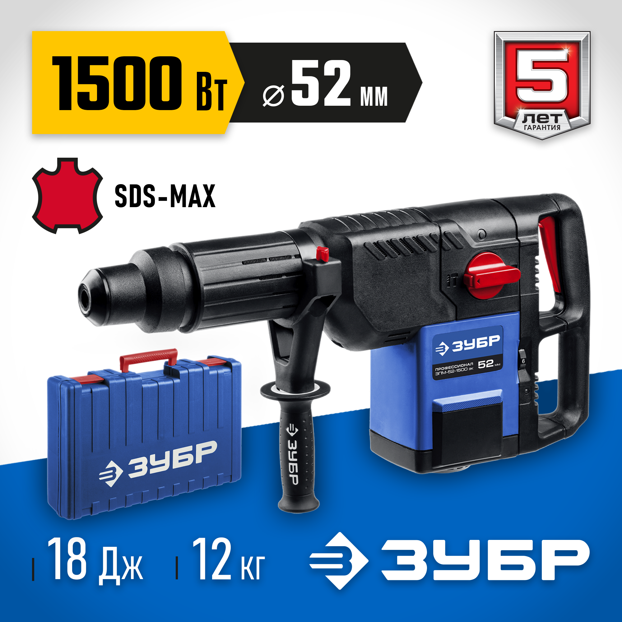 ЗУБР 52 мм, 1500 Вт, перфоратор SDS-Max, Профессионал (ЗПМ-52-1500 ЭК)