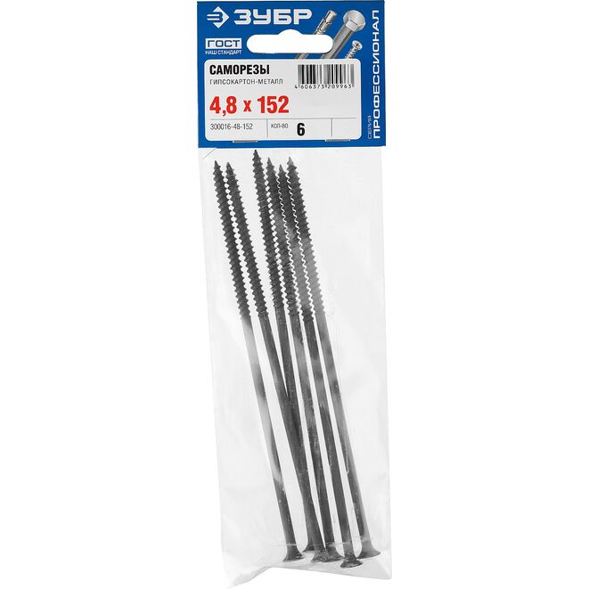 ЗУБР 152 х 4.8 мм, 6 шт., СГМ саморезы гипсокартон-металл 300016-48-152 Профессионал