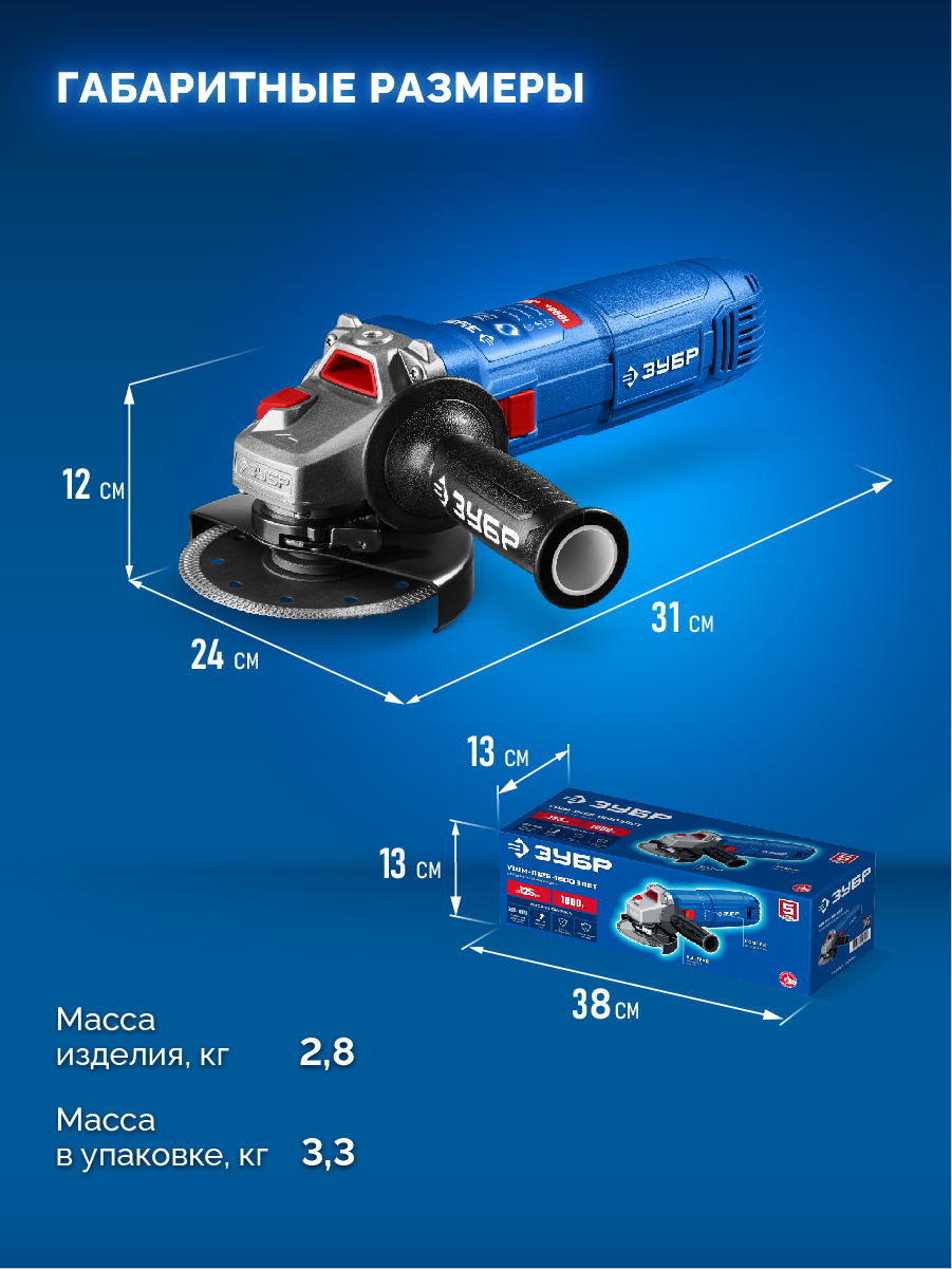 Принадлежности для ЗУБР 1800 Вт, d125 мм, УШМ, регулировка оборотов, Профессионал (УШМ-П125-1800 ЭПСТ):