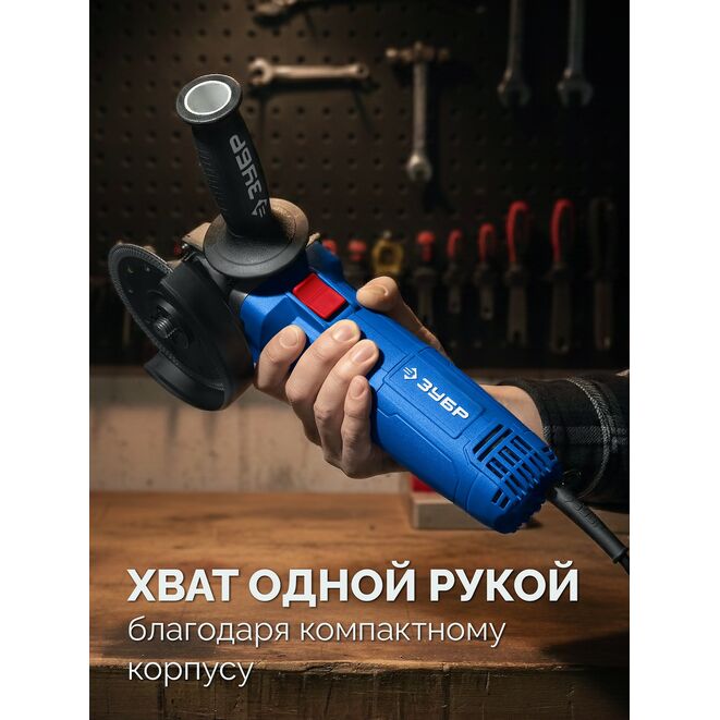 - Самая мощная среди одноручных моделей в ассортименте ЗУБР. Способна работать с отрезными, шлифовальными, алмазными дисками, щетками-крацовками всех видов, а также алмазными чашками