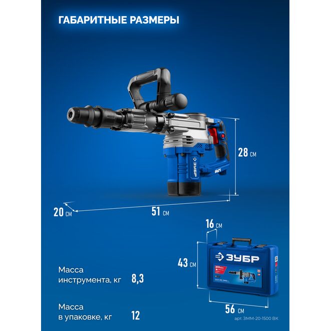 ЗУБР 20 Дж, 1500 Вт, АВТ, отбойный молоток SDS-Max, Профессионал (ЗММ-20-1500 ВК)