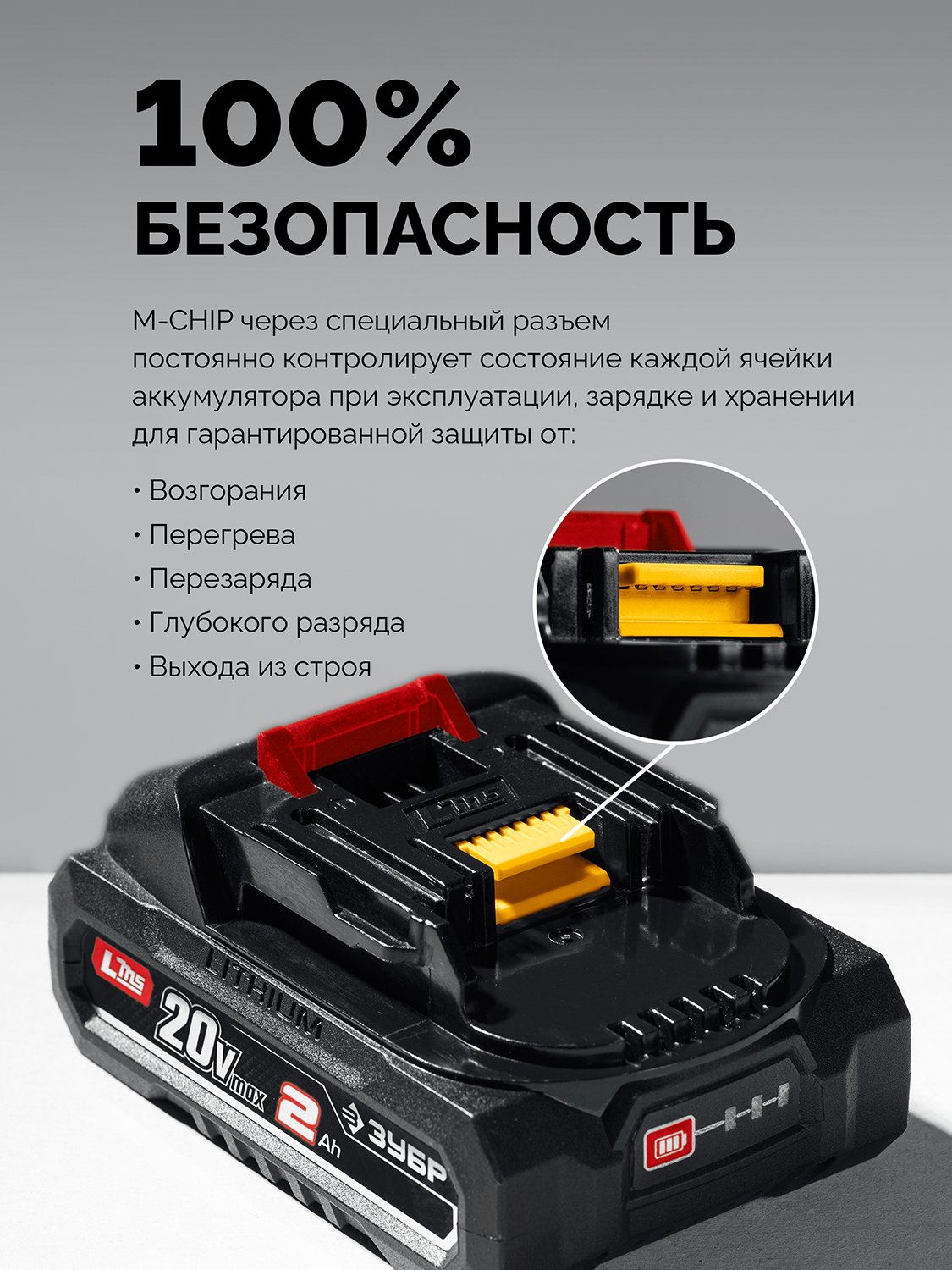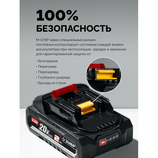 Принадлежности для ЗУБР 20 В, 100 мм шина, 1 АКБ LMS (2 Ач), мини-пила цепная аккумуляторная (ПЦА-2010-21):