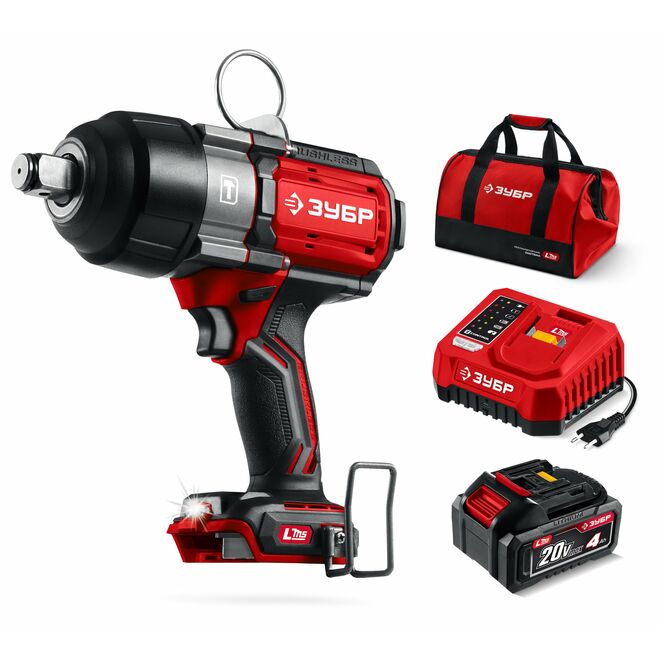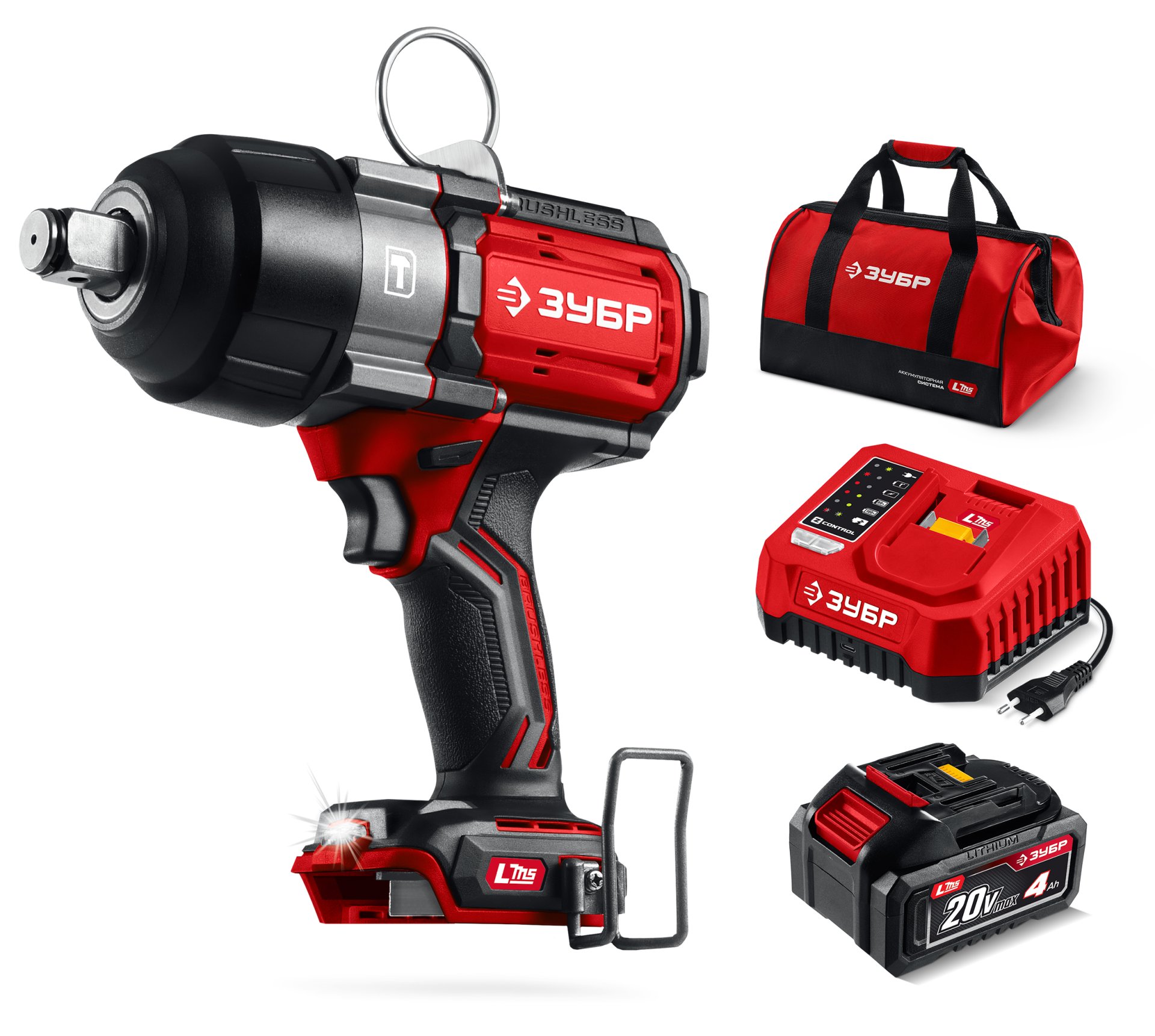 Принадлежности для ЗУБР 20 В, 1000 Н·м, 1 АКБ LMS (4 А·ч), бесщеточный ударный гайковерт, сумка (ГБУ-1000-41):
