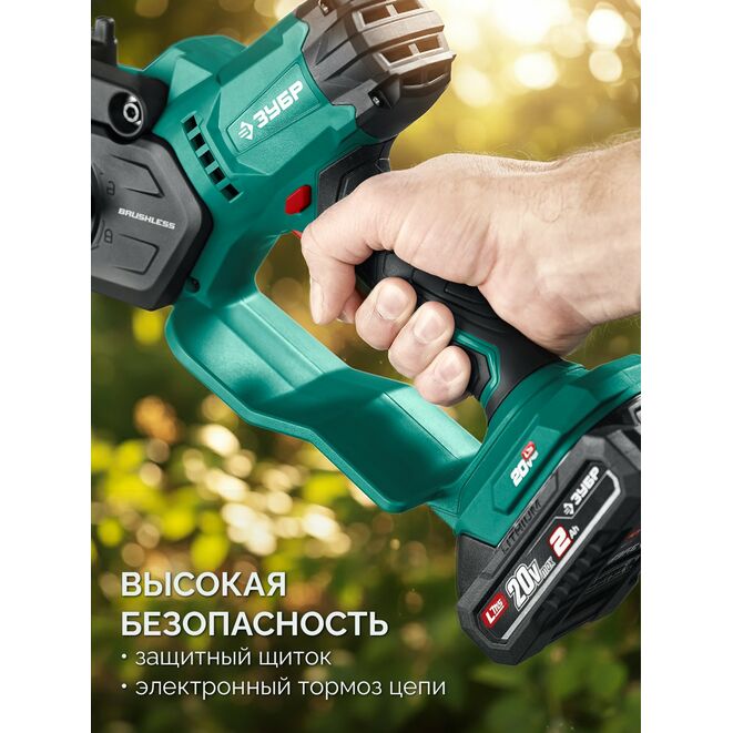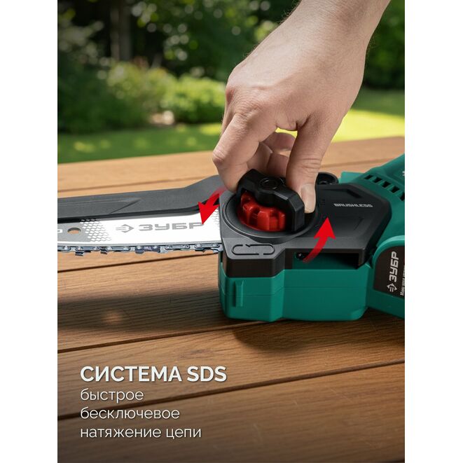 Аккумуляторная мини-пила ЗУБР создана для работы в саду, обрезки веток и простых строительных работ. Мощный BRUSHLESS двигатель и качественная цепь позволят быстро выполнить работуПрименение