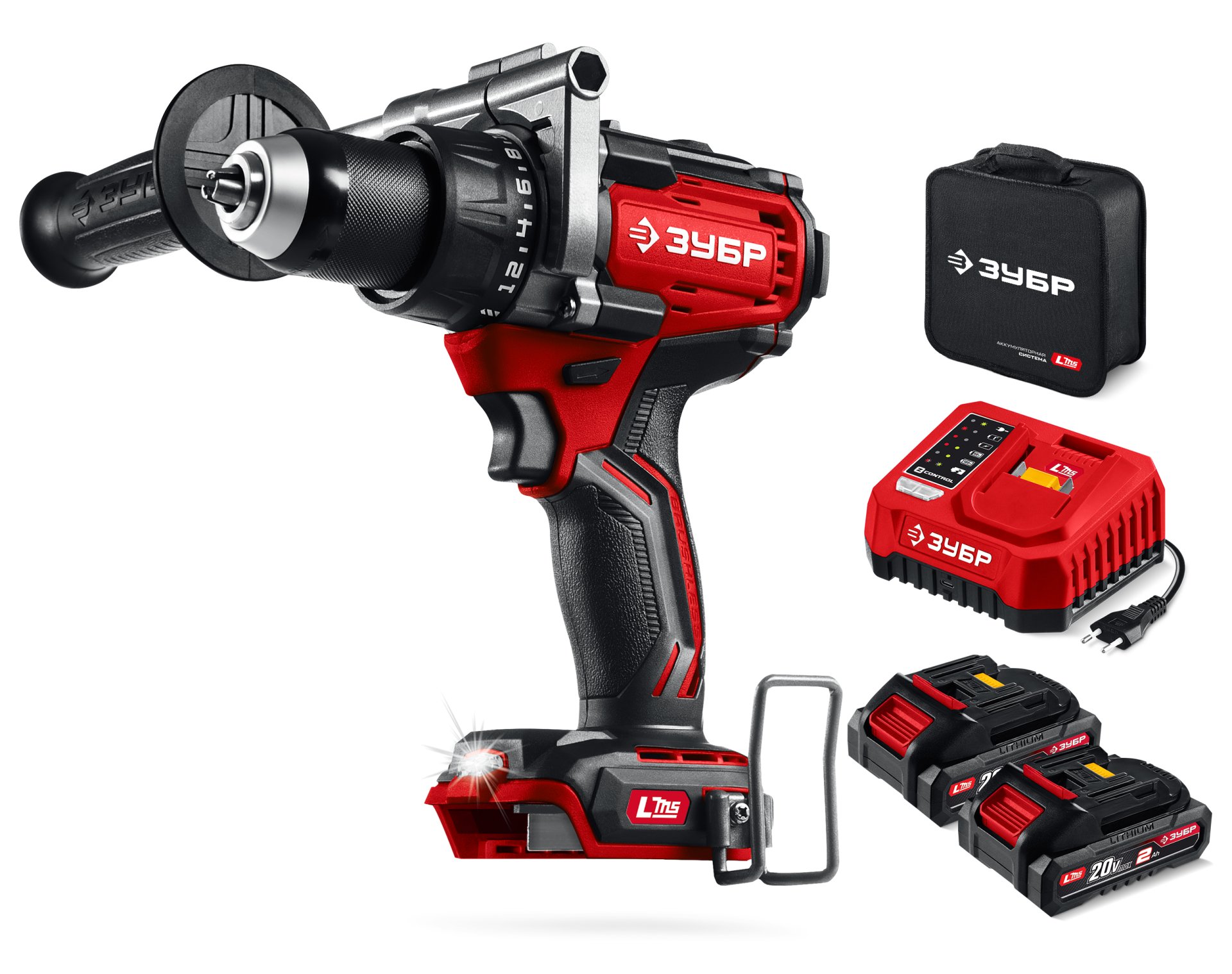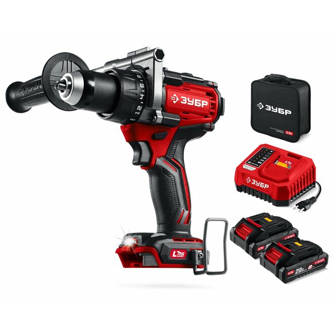 Принадлежности для ЗУБР 20 В, 165 Н·м, 2 АКБ LMS (2 А·ч), бесщеточная дрель-шуруповерт, сумка (ДБ-165-22):