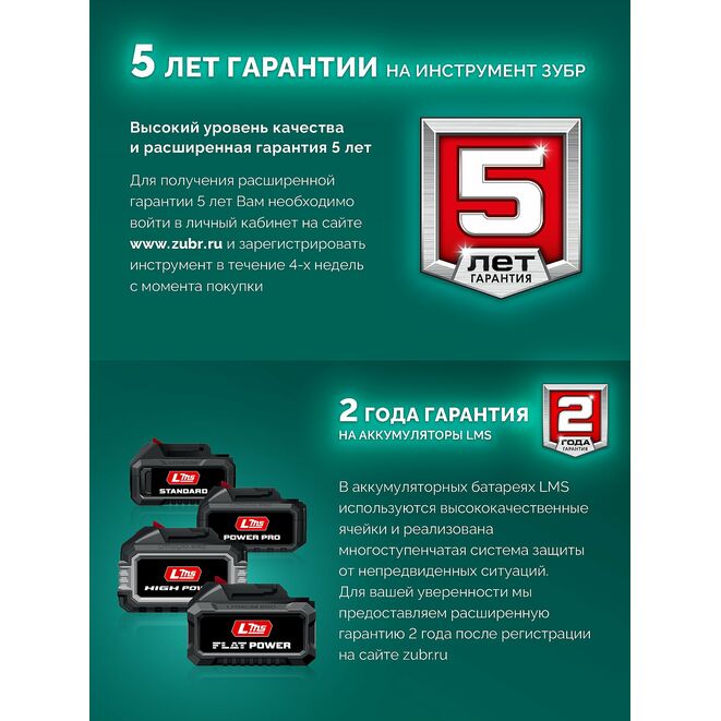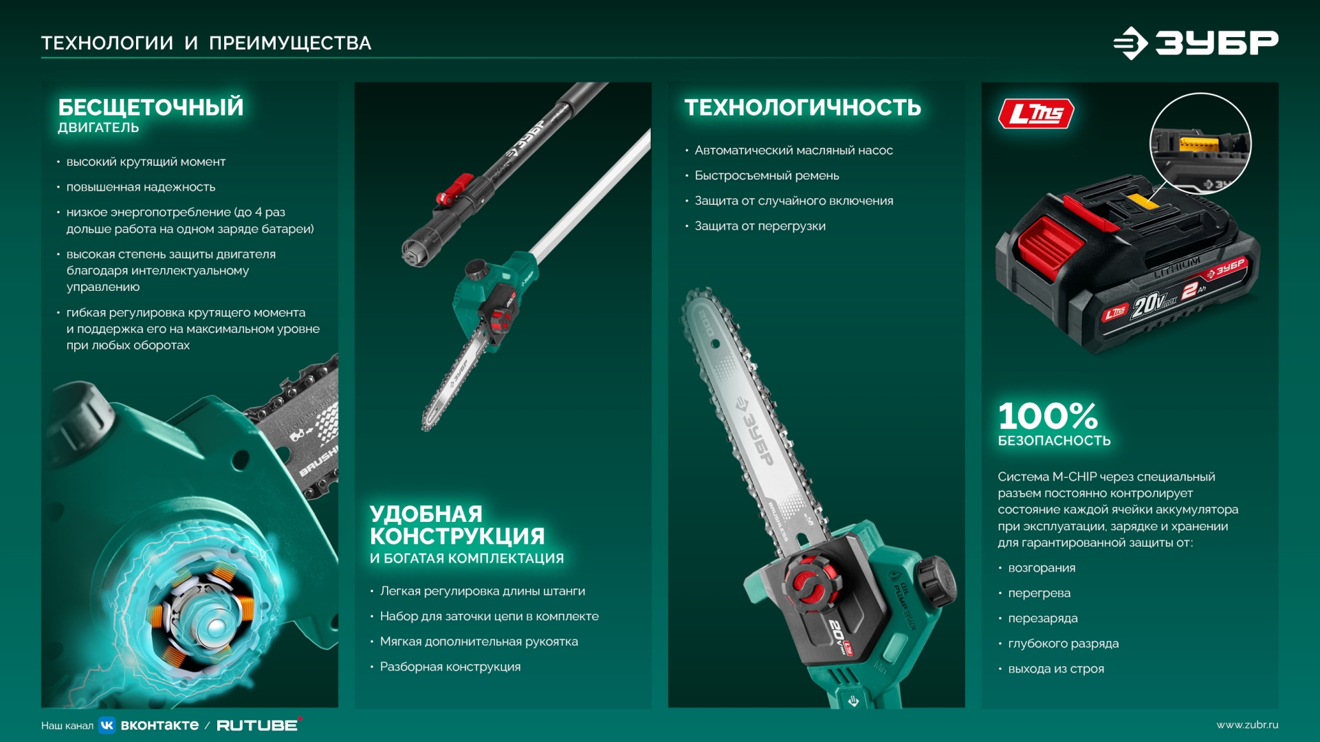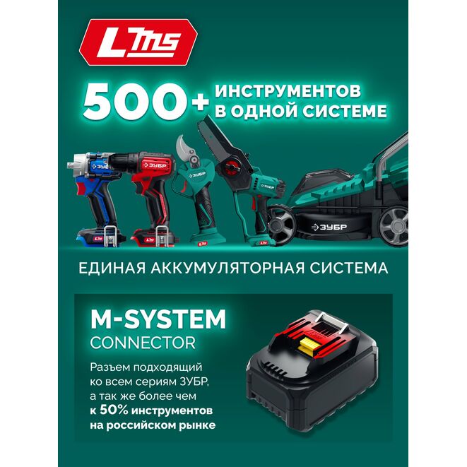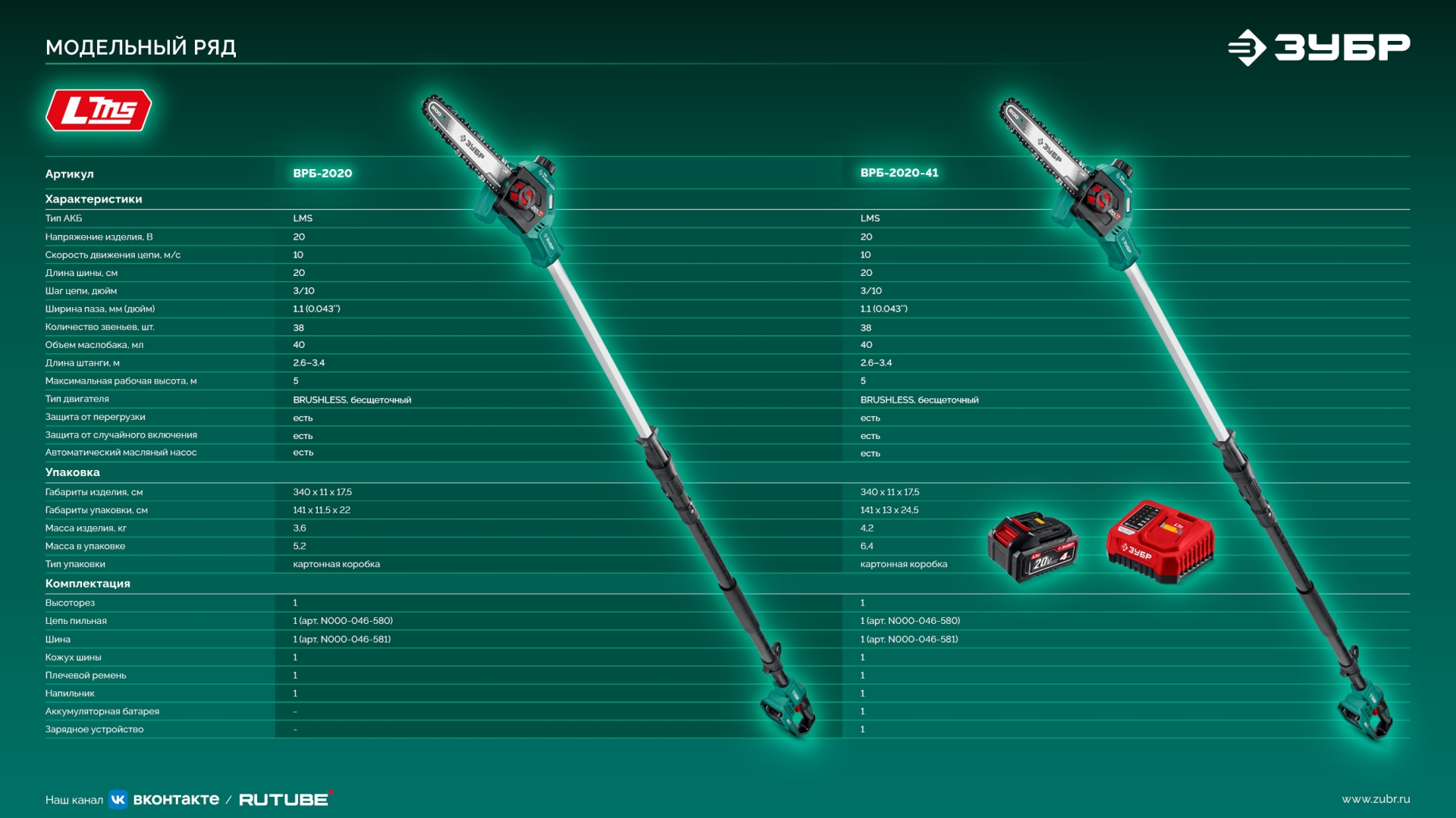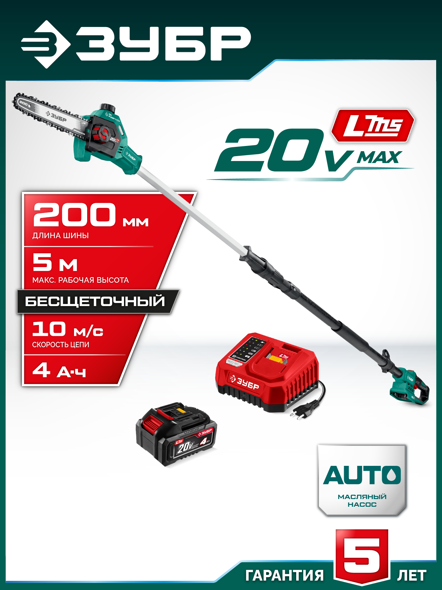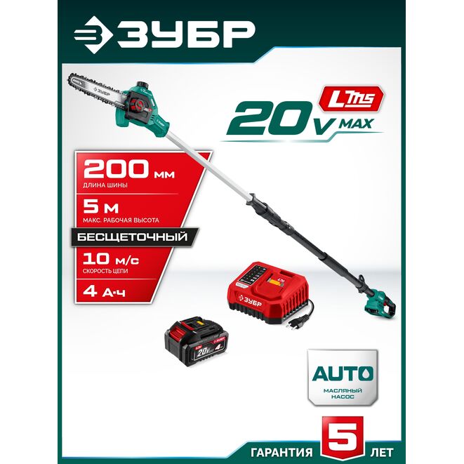 Принадлежности для ЗУБР 20 В, 200 мм шина, 1 АКБ LMS (4 Ач), высоторез аккумуляторный (ВРБ-2020):