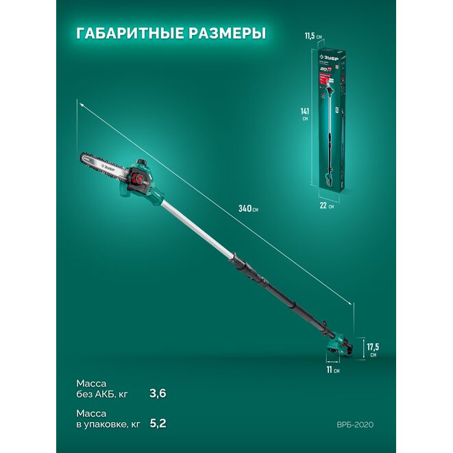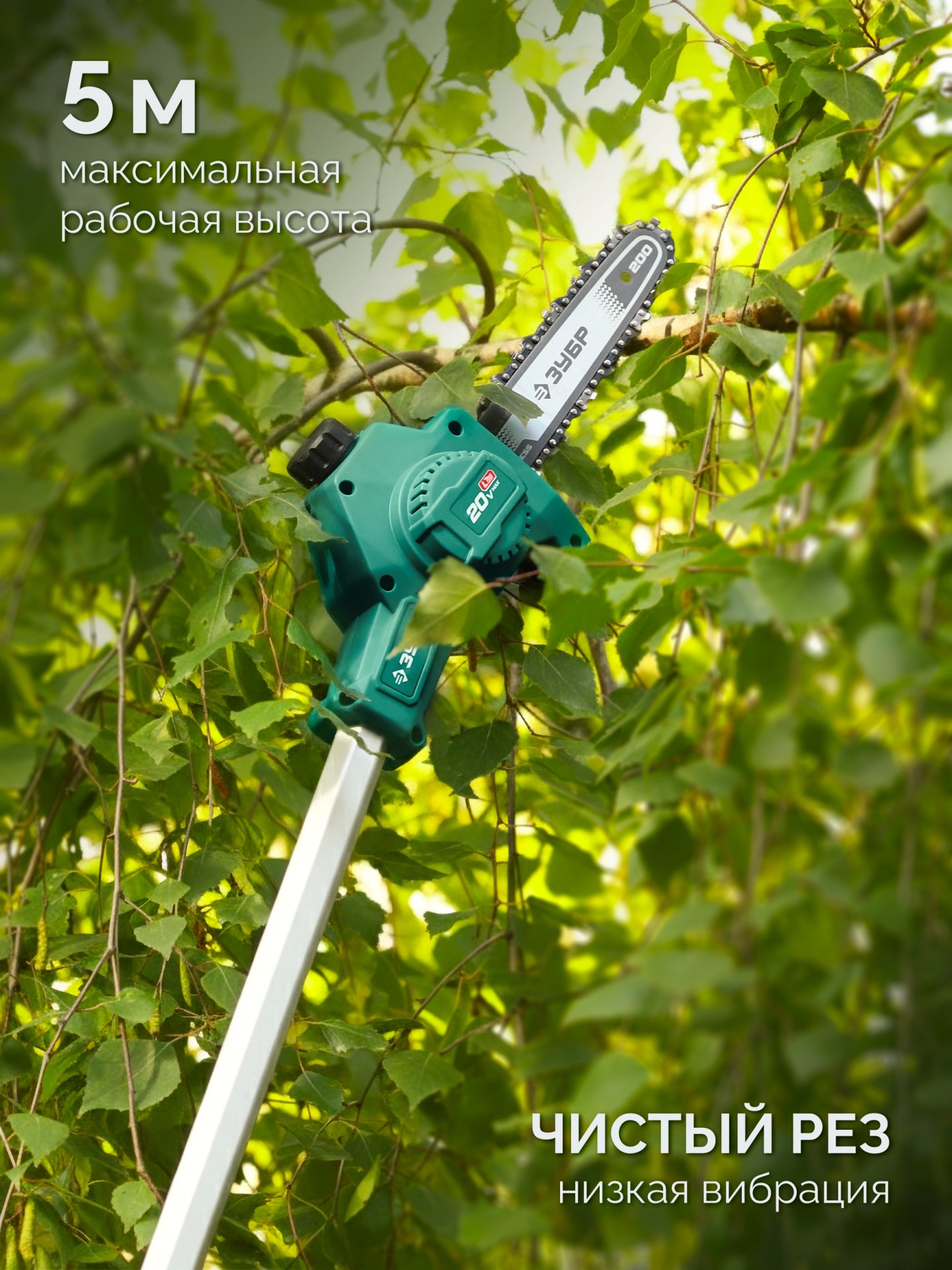 Высоторез аккумуляторный ЗУБР ВРБ-2020, предназначен для пиления веток, стволов различных пород дерева, обрезки сучьев и ухода за садовыми деревьями (с приводом режущего инструмента от электрического двигателя).Характеристики ЗУБР ВРБ-2020: