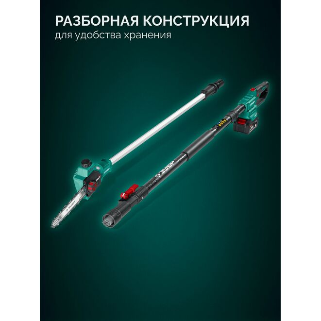 Высоторез аккумуляторный ЗУБР — надежный инструмент для обрезки сучьев и веток, который станет незаменимым помощником в уходе за вашими деревьями и кустами.С этим высоторезом вы сможете легко и безопасно обрезать ветки на значительной высоте, не прибегая к использованию стремянок или лестниц. Телескопическая ручка позволяет регулировать длину инструмента, что делает его удобным для работы на различной высоте.