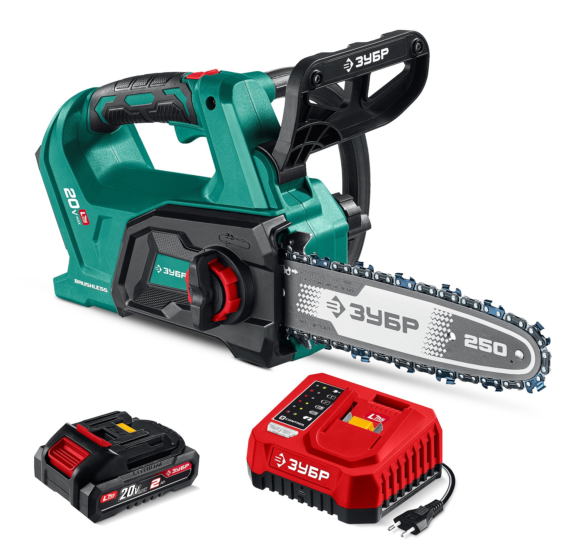 Принадлежности для ЗУБР 20 В, 250 мм шина, 1 АКБ LMS (2 Ач), пила цепная аккумуляторная (ПЦБ-2025-21):