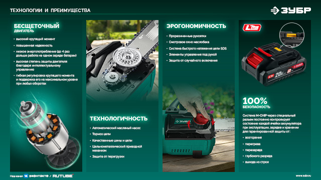 - Качественные шины и цепи ЗУБР обеспечивают отличную производительность