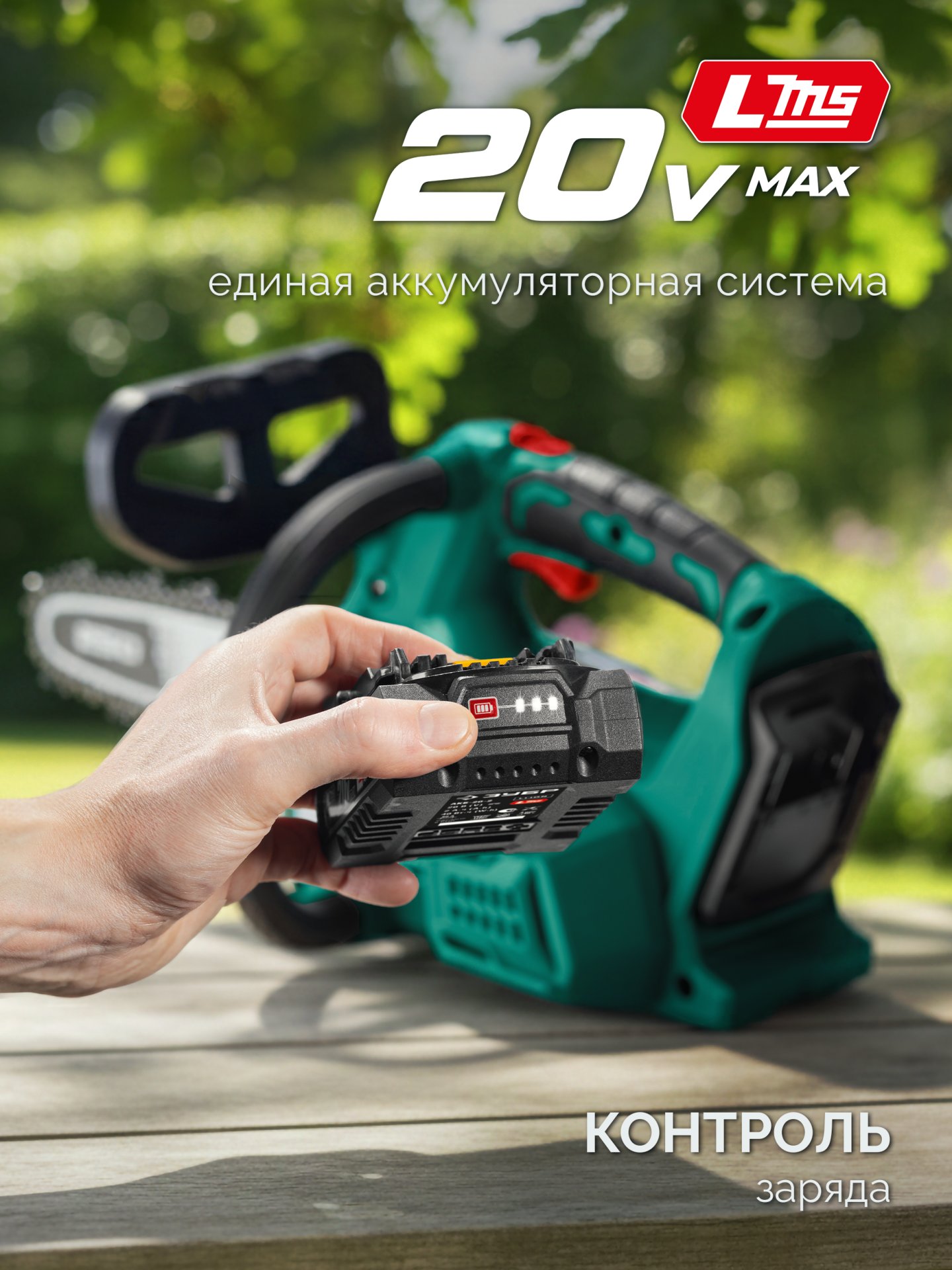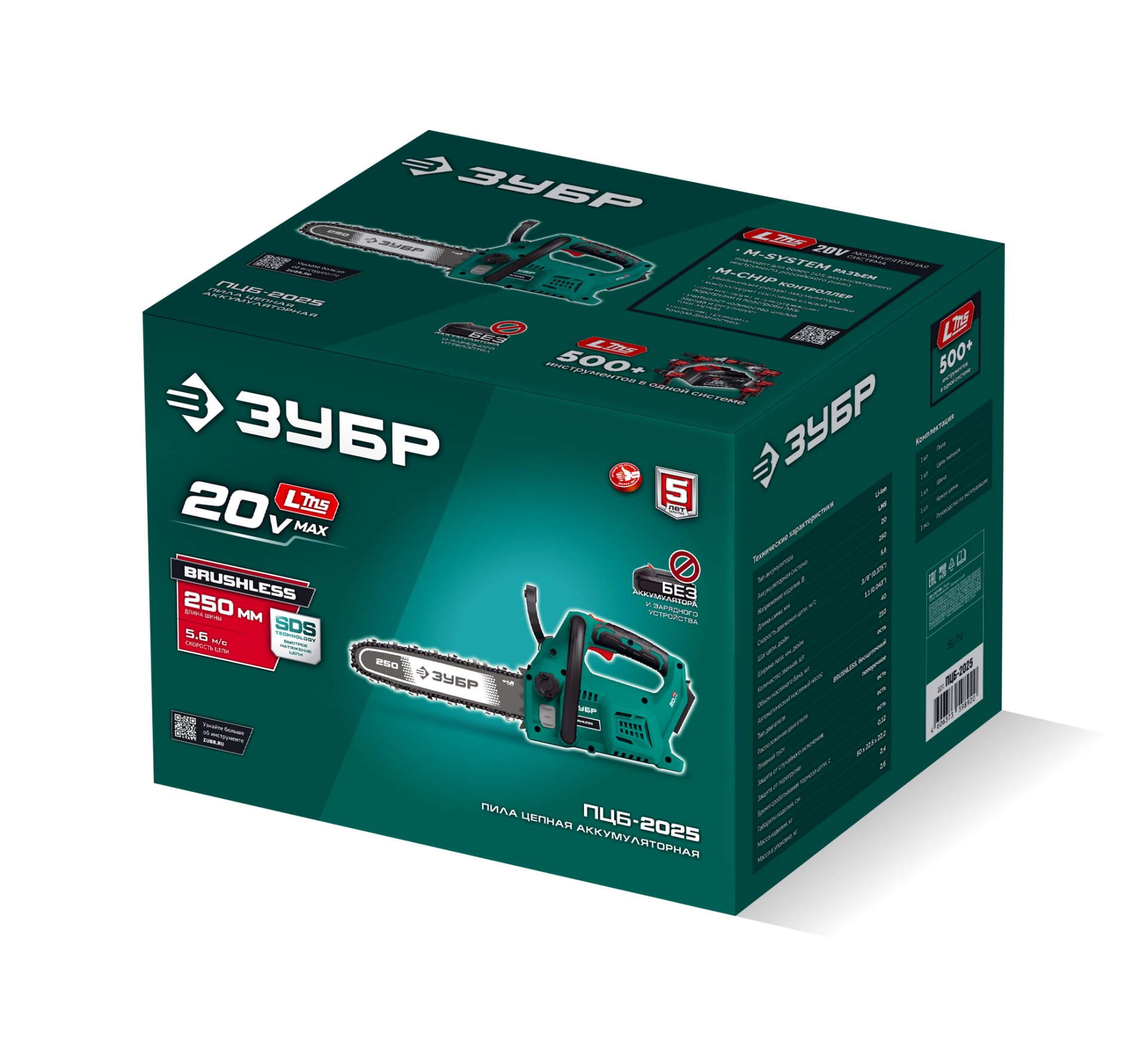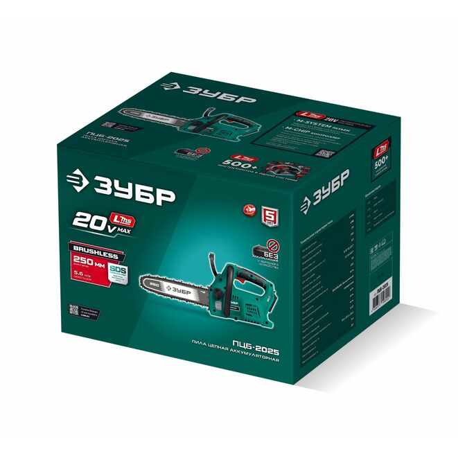 ЗУБР 20 В, 250 мм шина, без АКБ (LMS), пила цепная аккумуляторная (ПЦБ-2025)