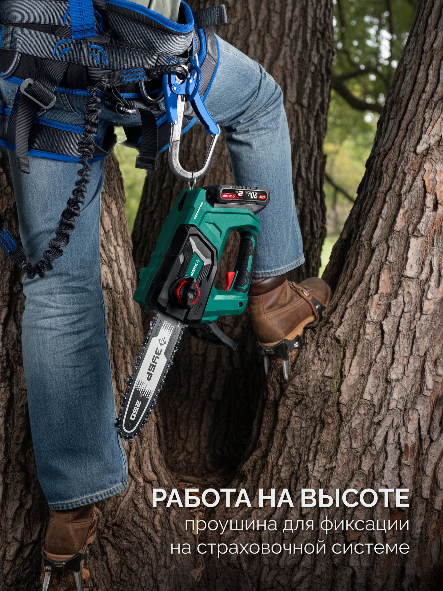 Компактная аккумуляторная цепная пила ЗУБР — идеальный инструмент для садоводов и строителей. Она отлично подходит для обрезки веток, пиления небольших деревьев и выполнения различных строительных и ремонтных работ. Благодаря мощному BRUSHLESS двигателю и качественной цепи, вы сможете быстро и эффективно справляться с любыми задачами. Особое внимание стоит уделить ее компактным размерам и удобному крючку, что делает пилу незаменимой для высотных работ. Легкость и маневренность инструмента позволяют легко добраться до труднодоступных мест, а крючок обеспечивает надежное крепление, освобождая ваши руки для других задач.Применение