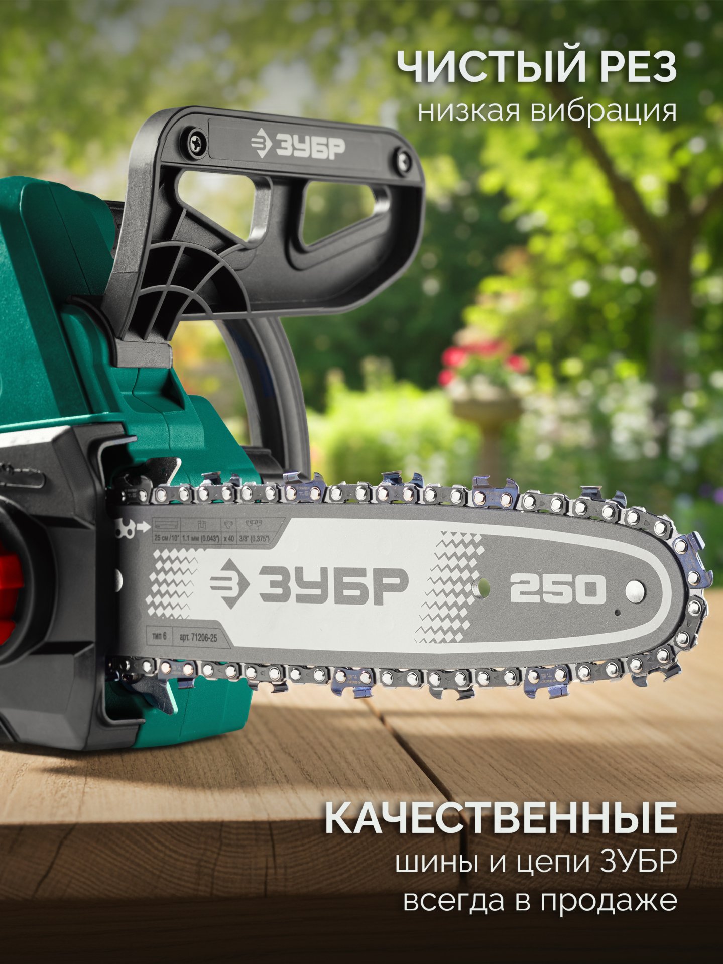 Принадлежности для ЗУБР 20 В, 250 мм шина, без АКБ (LMS), пила цепная аккумуляторная (ПЦБ-2025):
