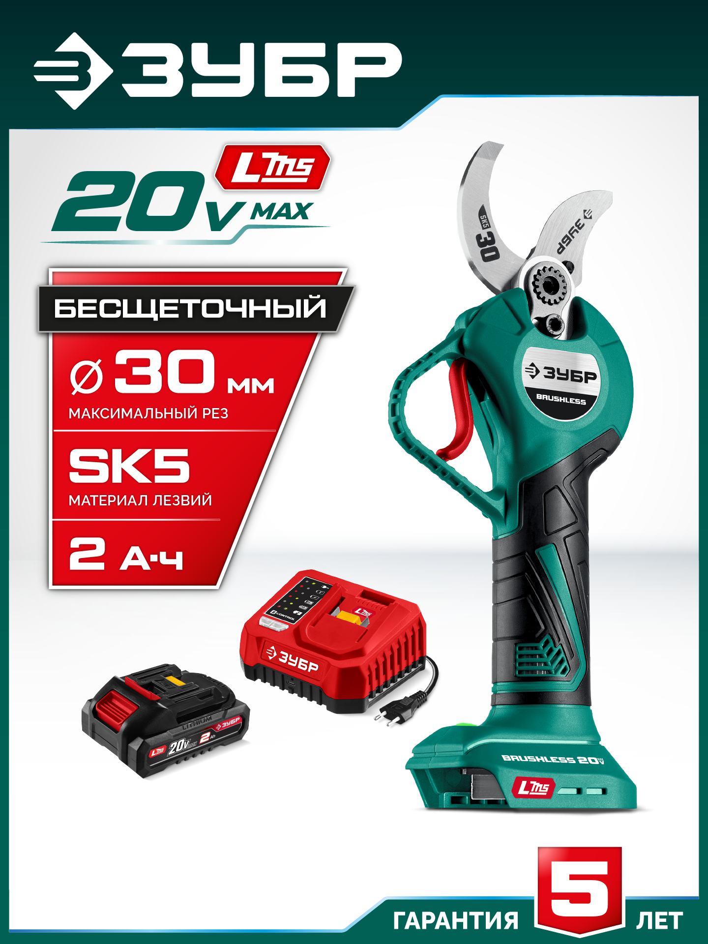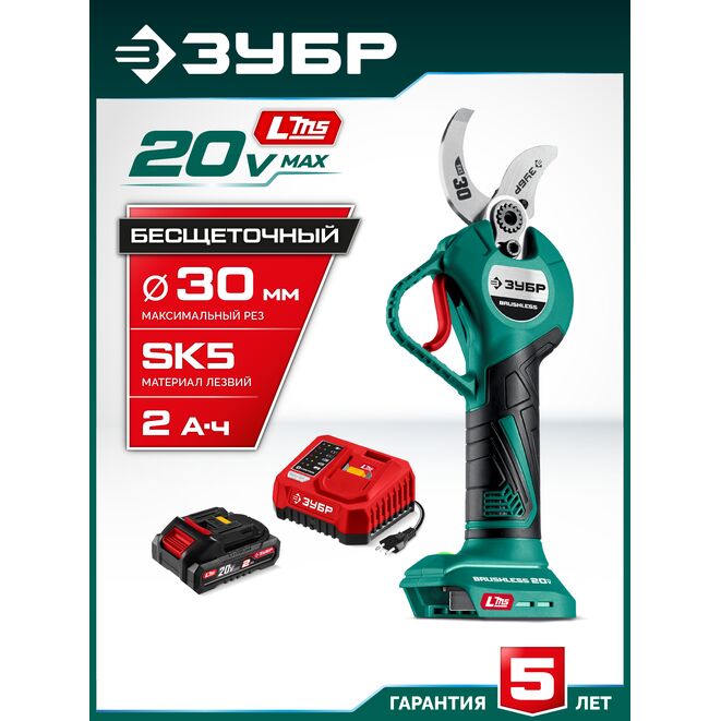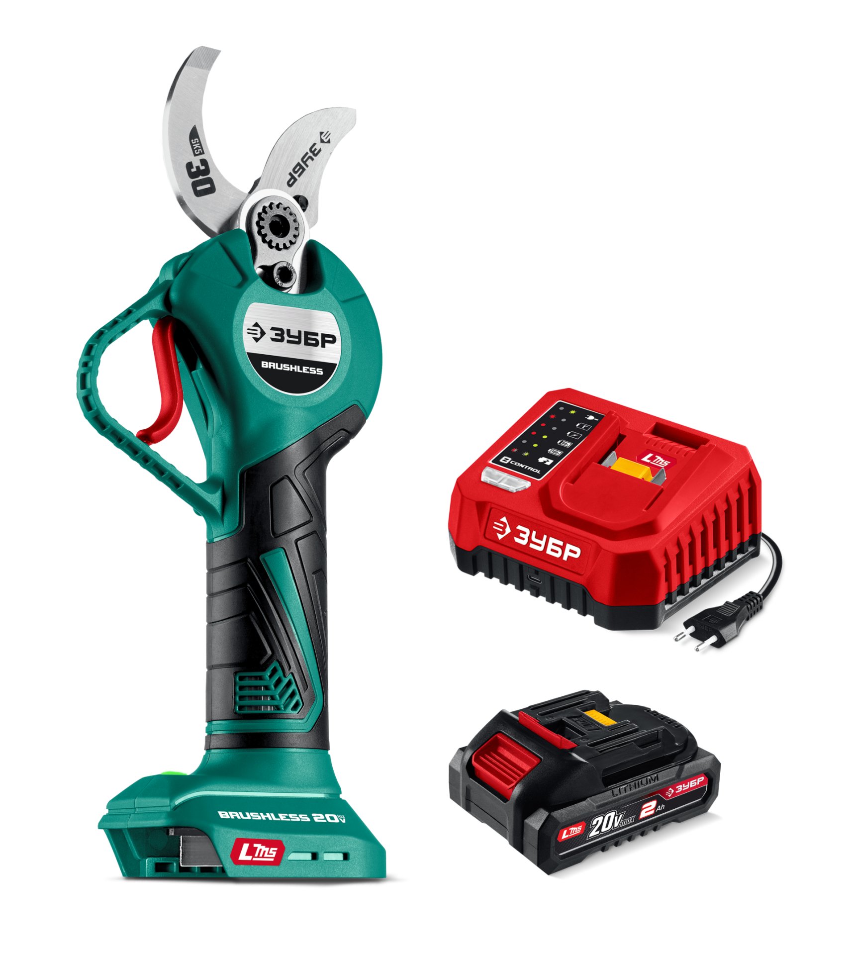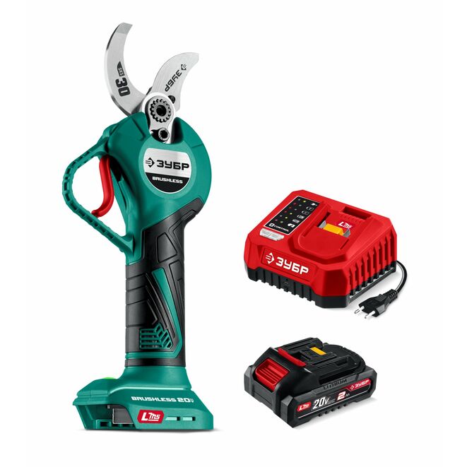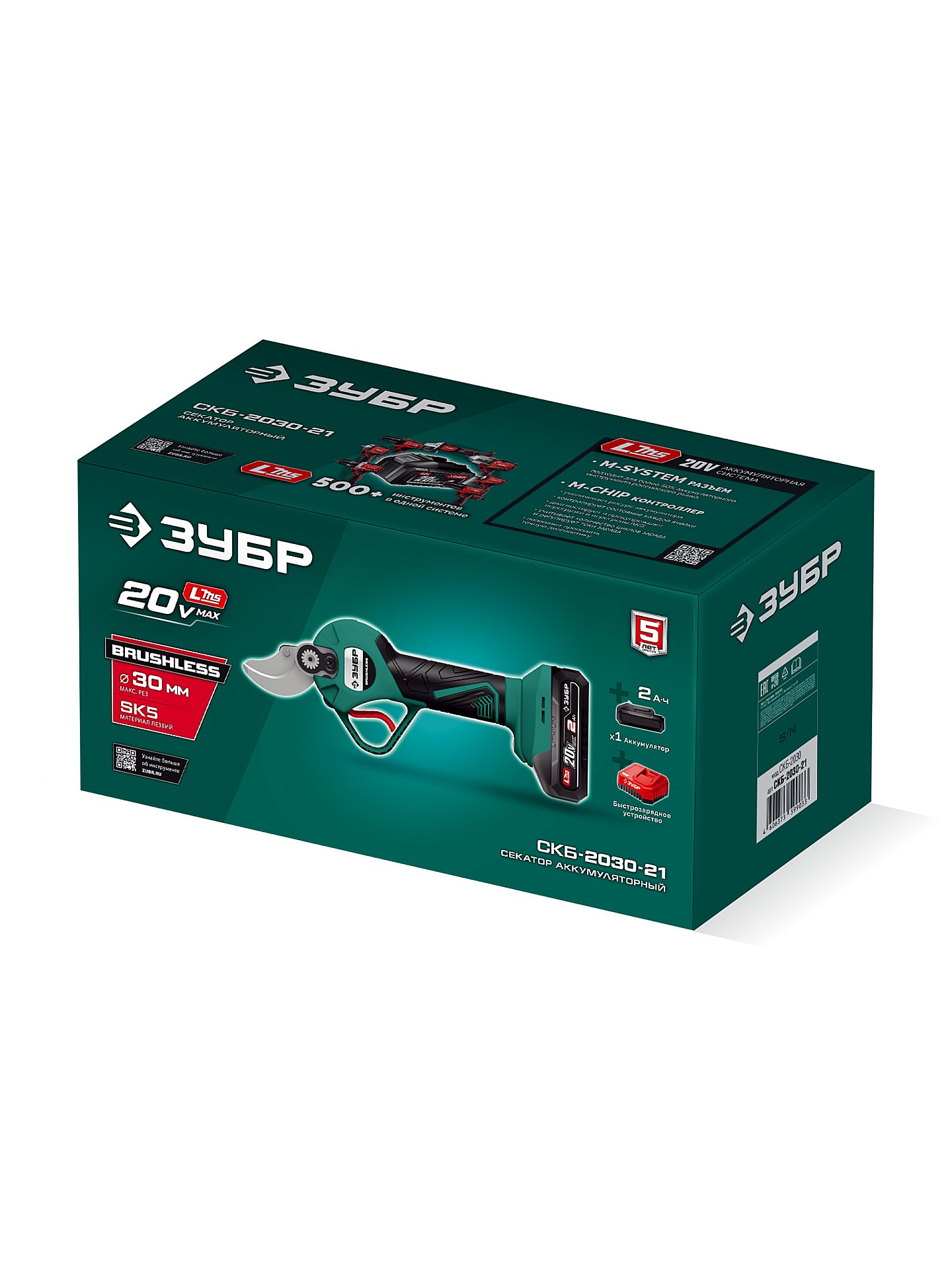 Принадлежности для ЗУБР 20 В, 30 мм макс. рез, 1 АКБ LMS (2 Ач), секатор аккумуляторный (СКБ-2030-21):
