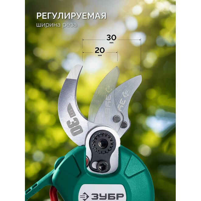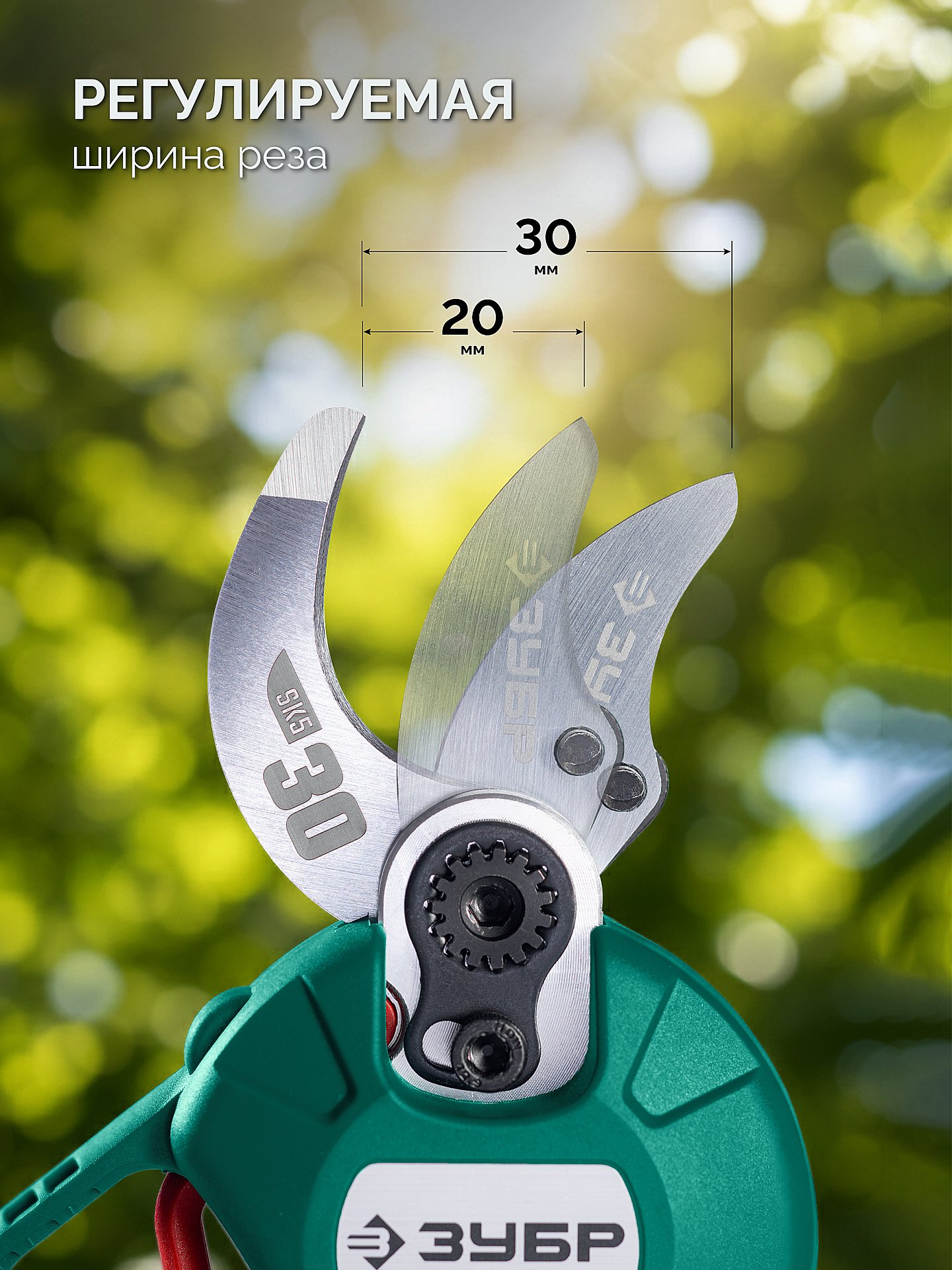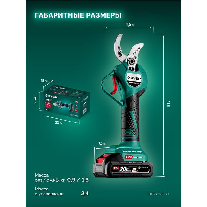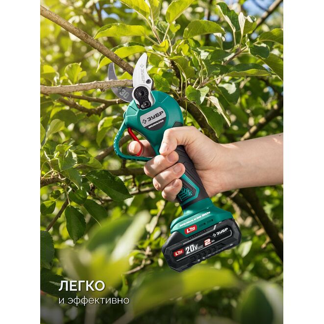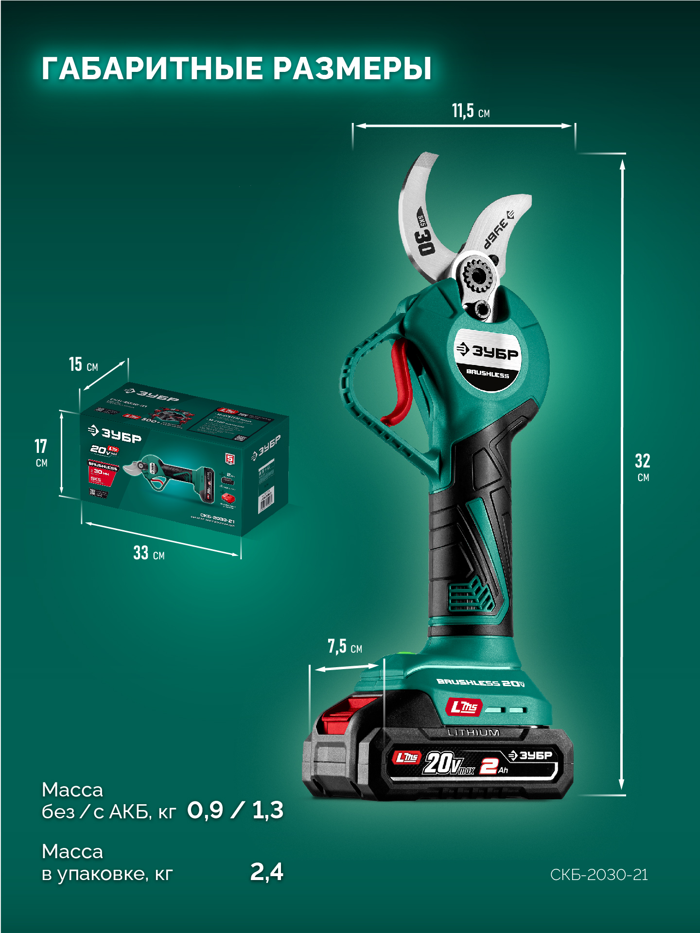 Секатор аккумуляторный ЗУБР СКБ-2030-21, предназначен для обрезания ветвей различных пород дерева, обрезки сучьев и ухода за садовыми деревьями (с приводом режущего инструмента от электрического двигателя).Характеристики ЗУБР СКБ-2030-21:
