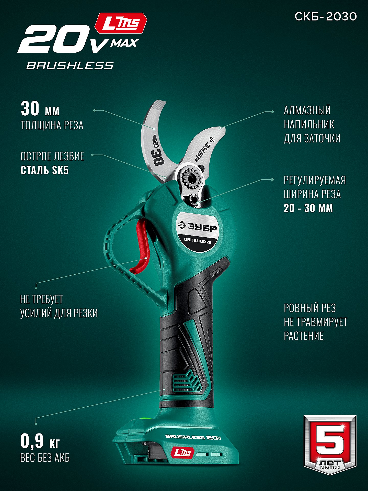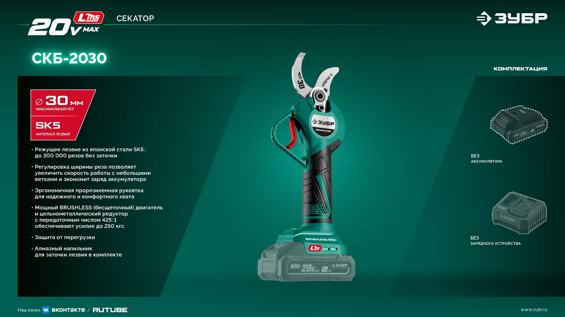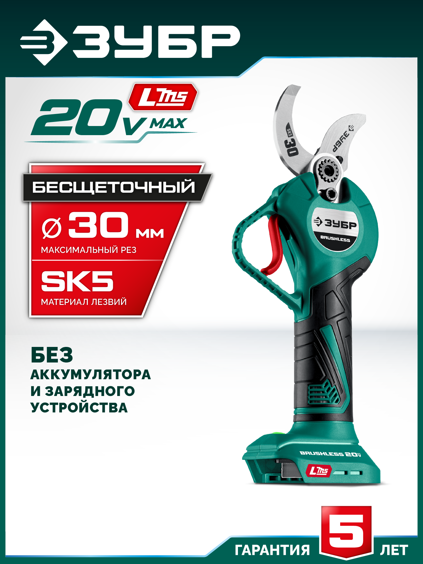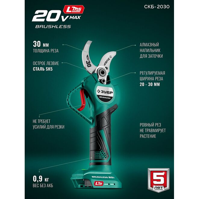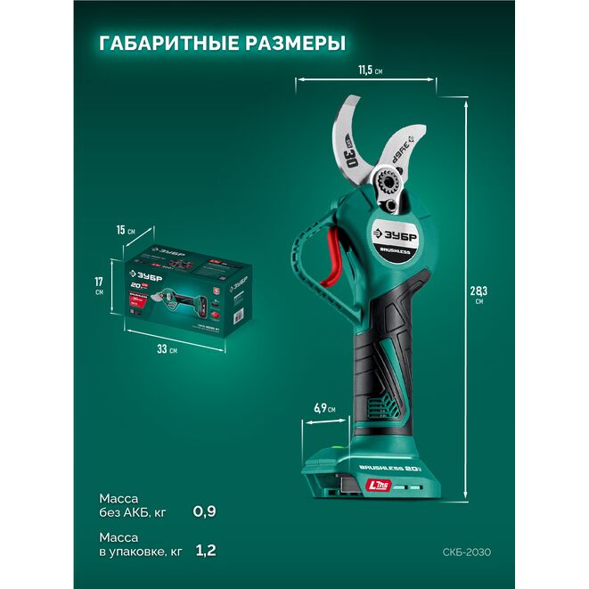 Принадлежности для ЗУБР 20 В, 30 мм макс. рез, без АКБ (LMS), секатор аккумуляторный (СКБ-2030):