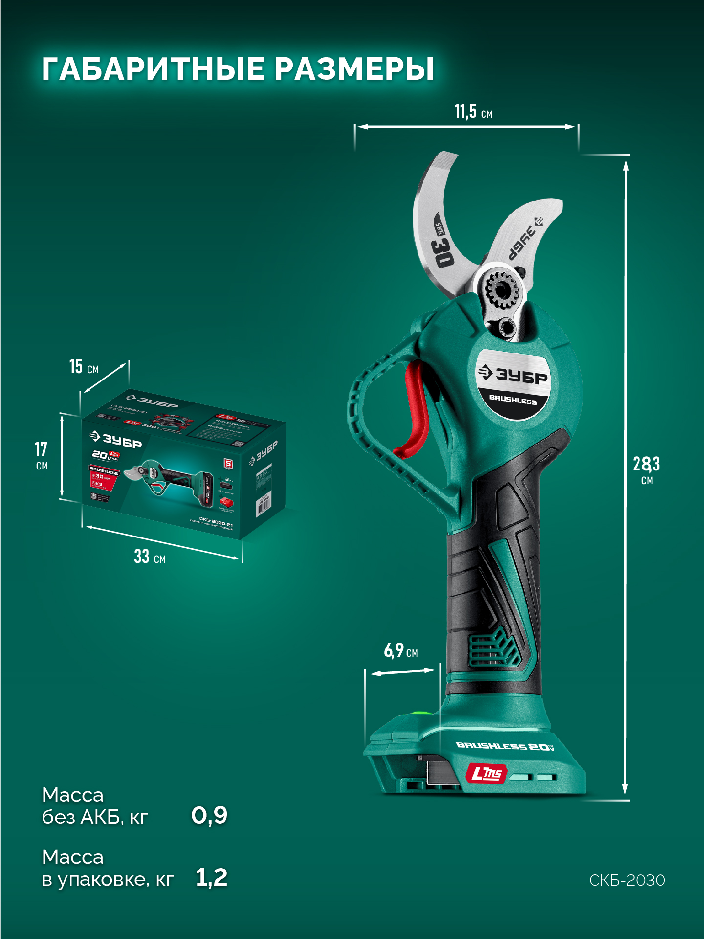 Секатор аккумуляторный ЗУБР СКБ-2030, предназначен для обрезания ветвей различных пород дерева, обрезки сучьев и ухода за садовыми деревьями (с приводом режущего инструмента от электрического двигателя).Характеристики ЗУБР СКБ-2030: