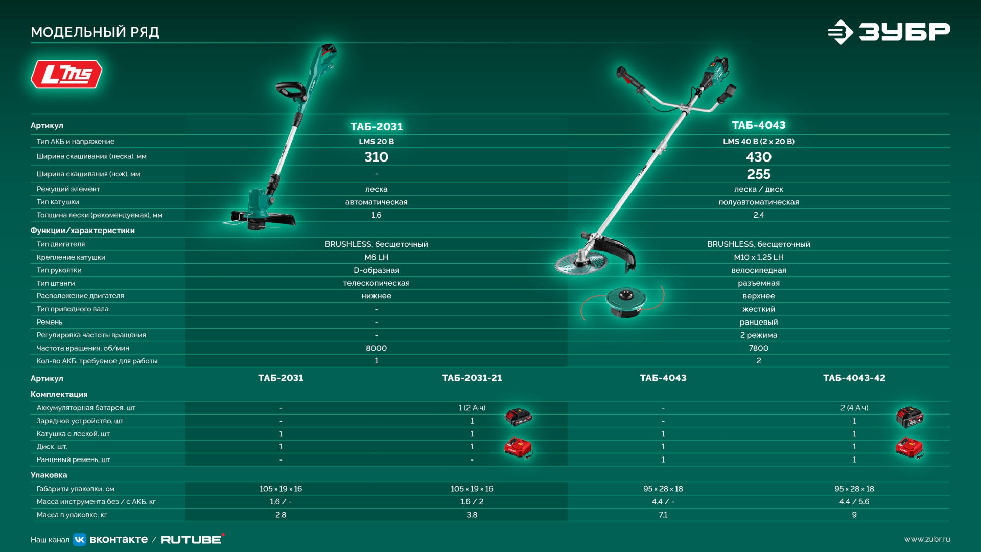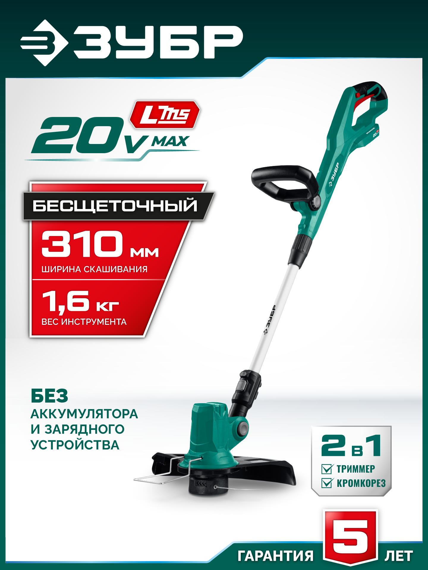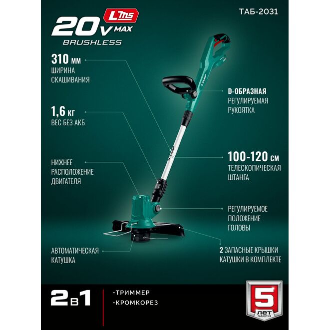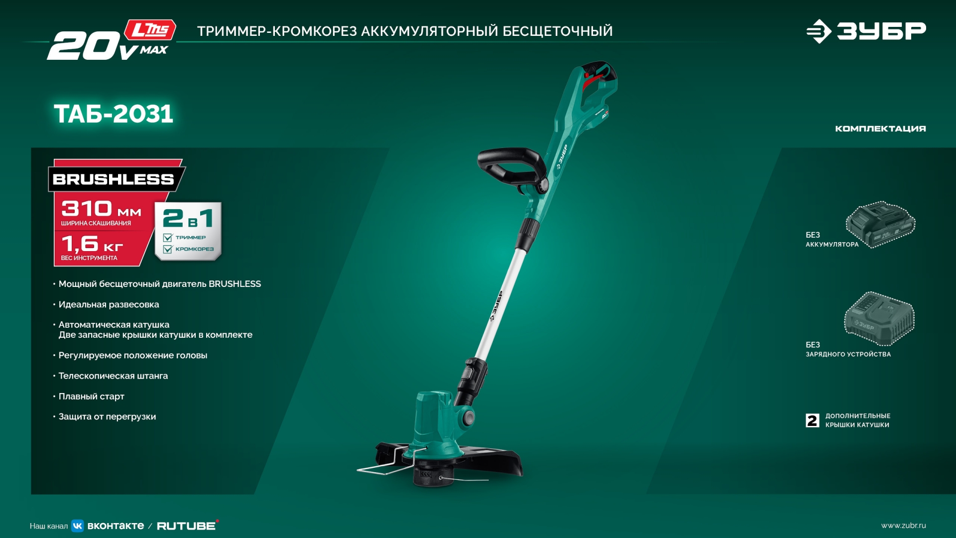 Принадлежности для ЗУБР 20 В, 310 мм, без АКБ (LMS), триммер аккумуляторный бесщеточный (ТАБ-2031):