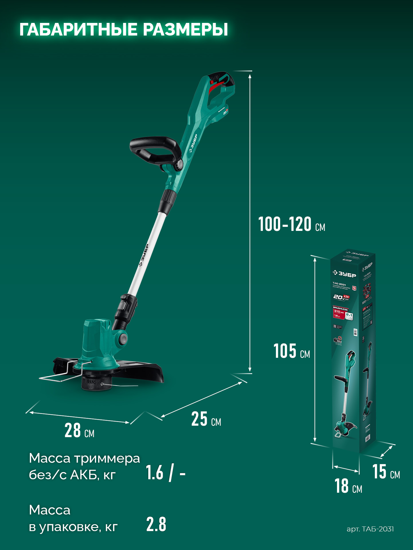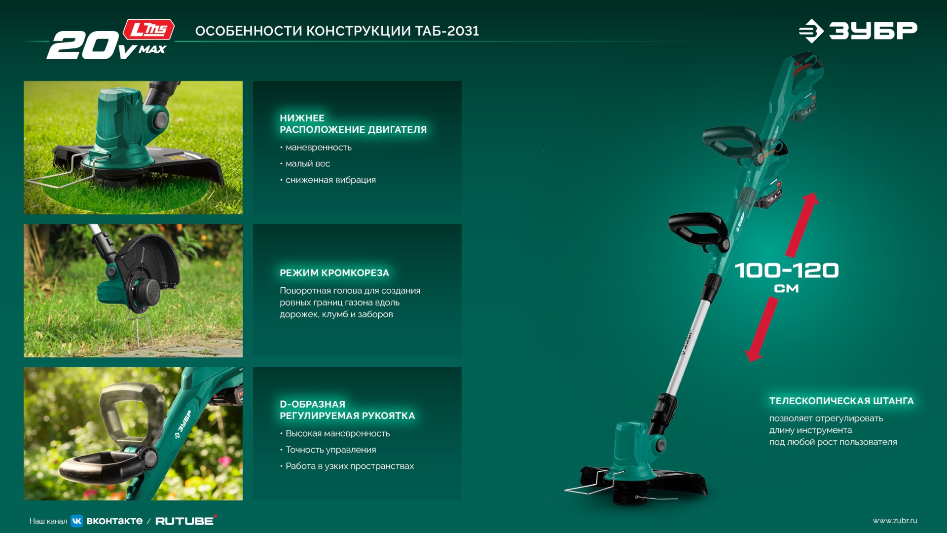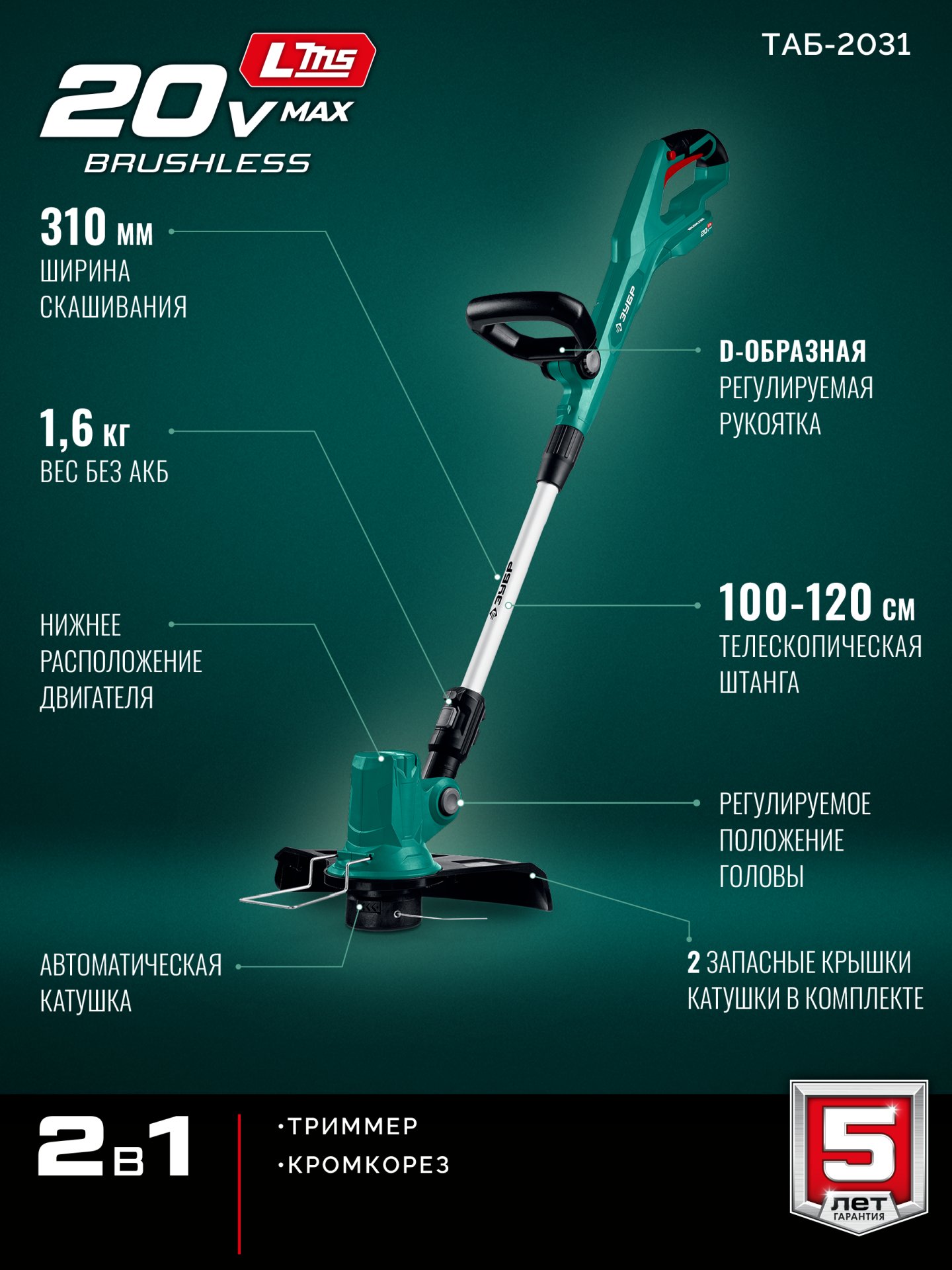 Принадлежности для ЗУБР 20 В, 310 мм, без АКБ (LMS), триммер аккумуляторный бесщеточный (ТАБ-2031):