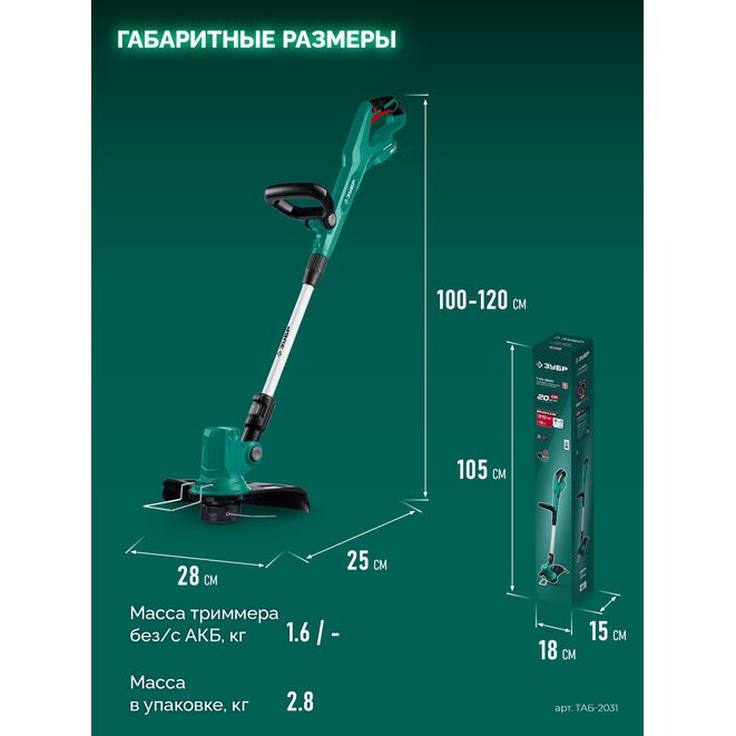 Триммер аккумуляторный ЗУБР ТАБ-2031 предназначен для кошения травы на садовых участках и газонах.Характеристики ЗУБР ТАБ-2031:
